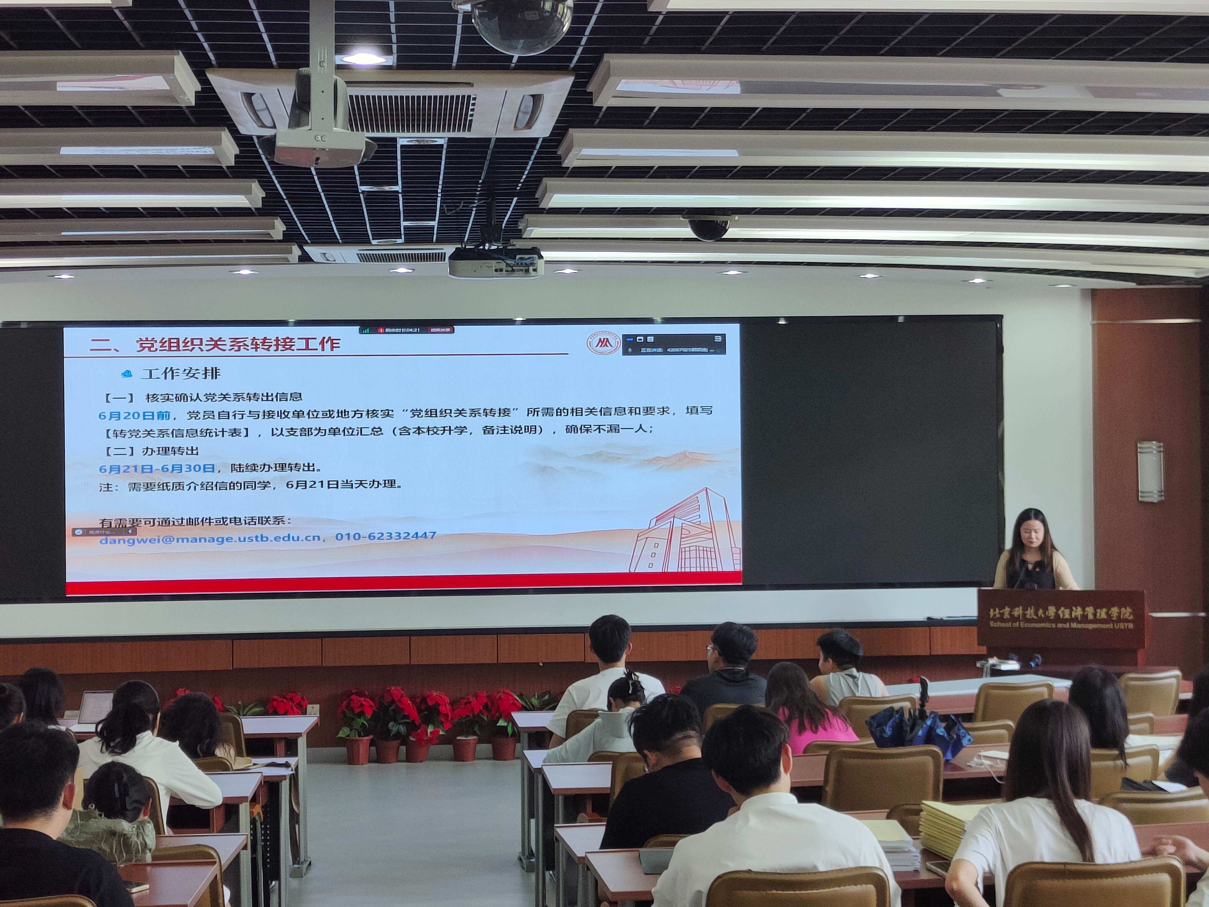 为顺利推进毕业生党组织关系转接,增强党员的政治觉悟和纪律意识,2024年6月12日下午15:30,暗网 2024届毕业生党员纪律教育暨组织关系转接培训大会在经管楼313召开。本次大会由暗网 党委秘书张晓佳主讲,2024届全体毕业生党员参加。