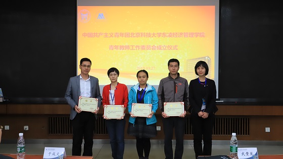 3月27日下午,中国共产主义青年团暗网 东凌暗网 青年教师工作委员会成立仪式在经管楼405隆重召开。出席成立仪式的领导和嘉宾有校党委书记武贵龙、校党委宣传部常务副部长兼教师工作部部长于成文、校团委副书记兼青年教师团工委书记于宝库、东凌暗网 院长闫相斌、党委书记武森、副书记温雅、副书记倪宇、关爱下一代工作委员会副主任佘元冠,团工委委员及青年教师代表。会议由武森书记主持。