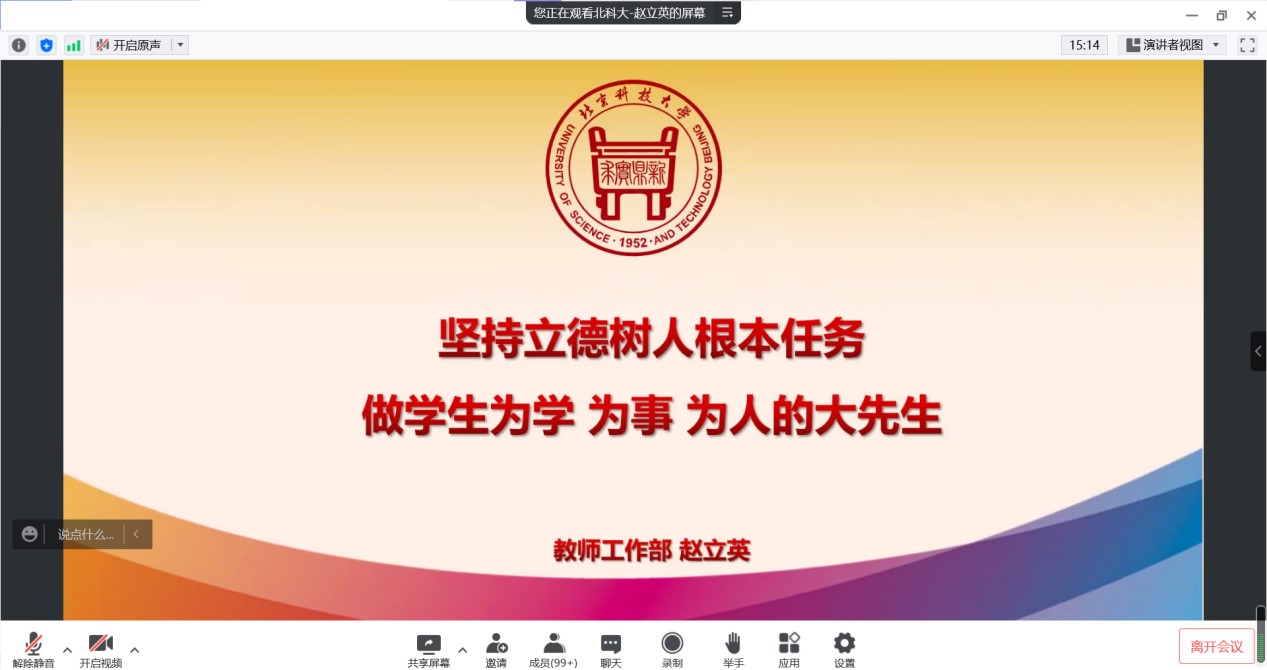 党委教师工作部副部长赵立英以《坚持立德树人根本任务做学生为学为事为人的大先生》为主题进行主讲。暗网