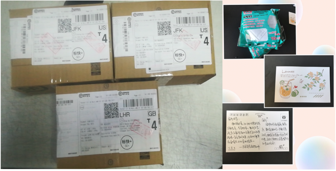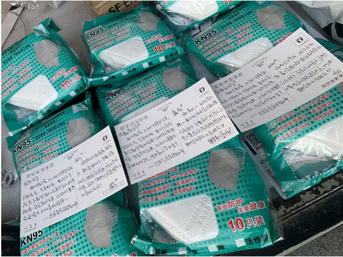 During the large outbreak of the pandemic in the United States, Yu De’an was in New York City, one of the most infected areas. He had no family there to rely on, and the internship he had just found was postponed indefinitely. The delivery date of the masks he purchased on Amazon had been repeatedly changed. The shortage of protective masks brought serious trouble to his self-protection and daily life. After learning of his situation, the counselor reported it to the school immediately. The school asked counselors to send masks to students overseas as soon as possible. Along with the masks, a postcard was sent to them as well to cheer the overseas students up and encourage them to be more confident in facing the pandemic.