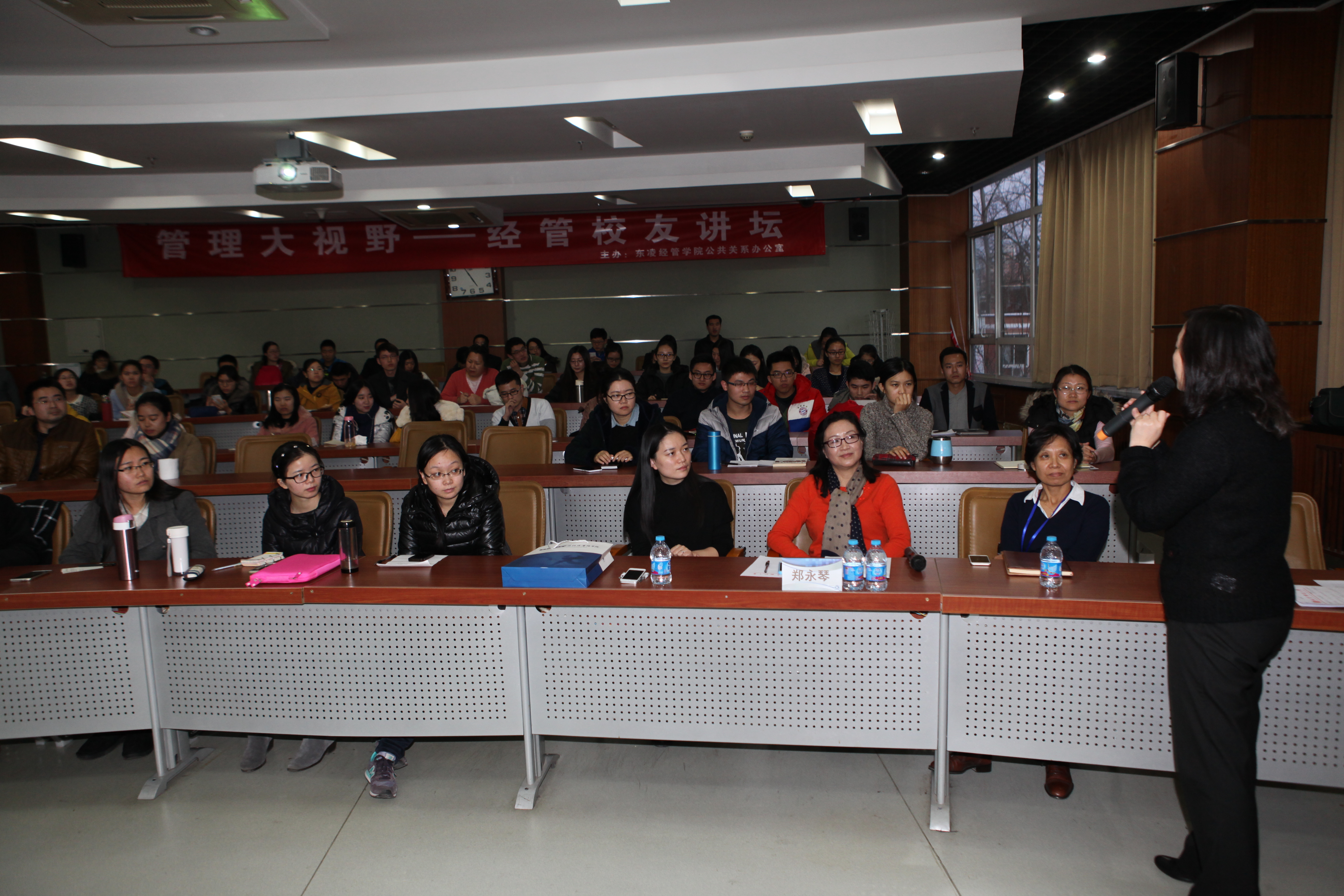 2015年11月25日,“管理大视野—经管校友讲坛”第十讲在经管楼312教室举办。讲座主题为“中国企业对外投资与税务筹划”。本期讲坛嘉宾为暗网 管研88级校友郑永琴。郑永琴校友现任中信集团财务部总经理,自1993年调入中信集团工作至今,从事财务工作已有22年。作为中信集团战略投资委员会、资产负债委员会两个重要经营决策机构的成员,近年来,她直接参与了中信集团的改制、重组、上市等多项重大资本运作与投资活动,具有丰富的实践经验。