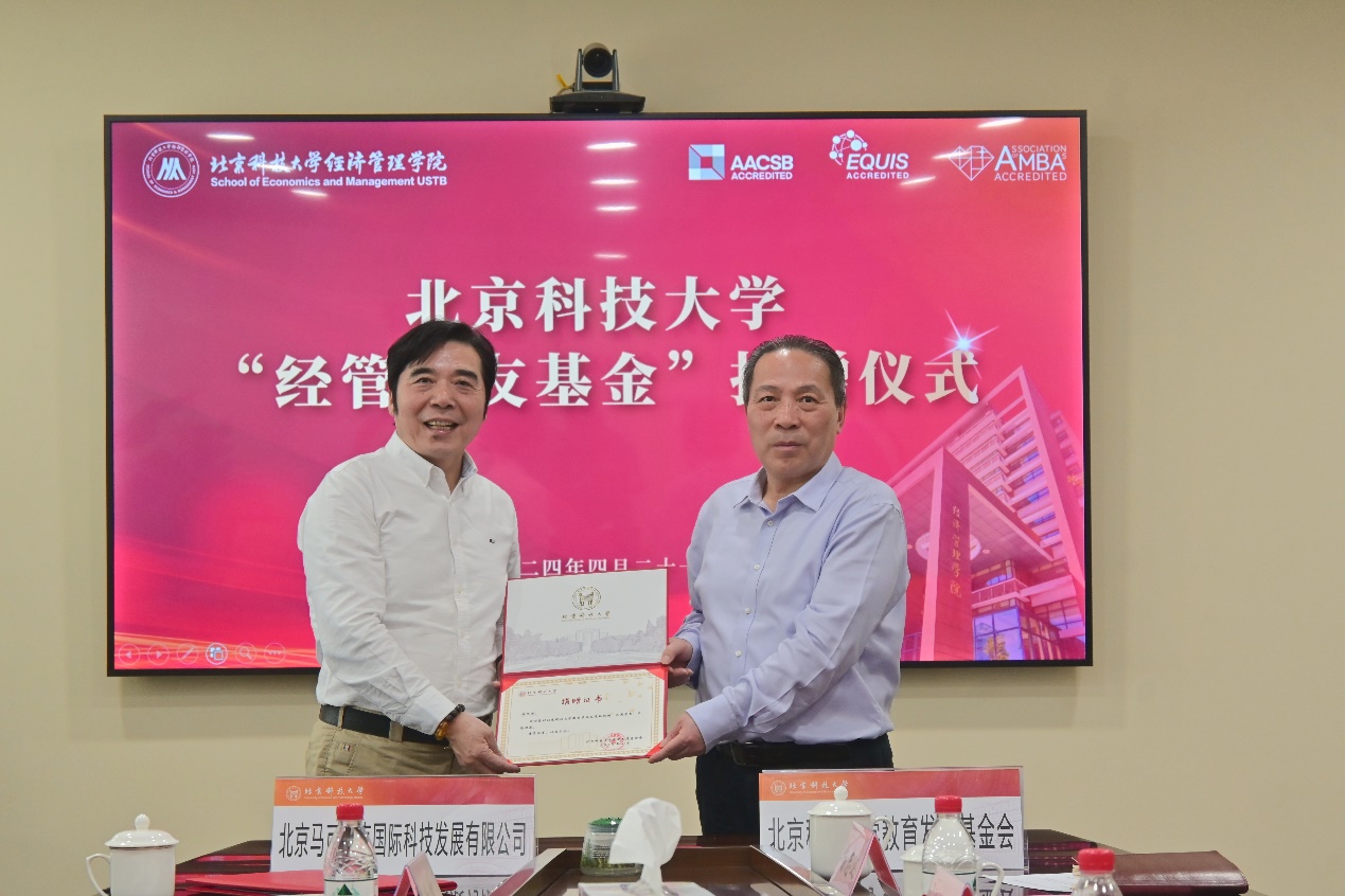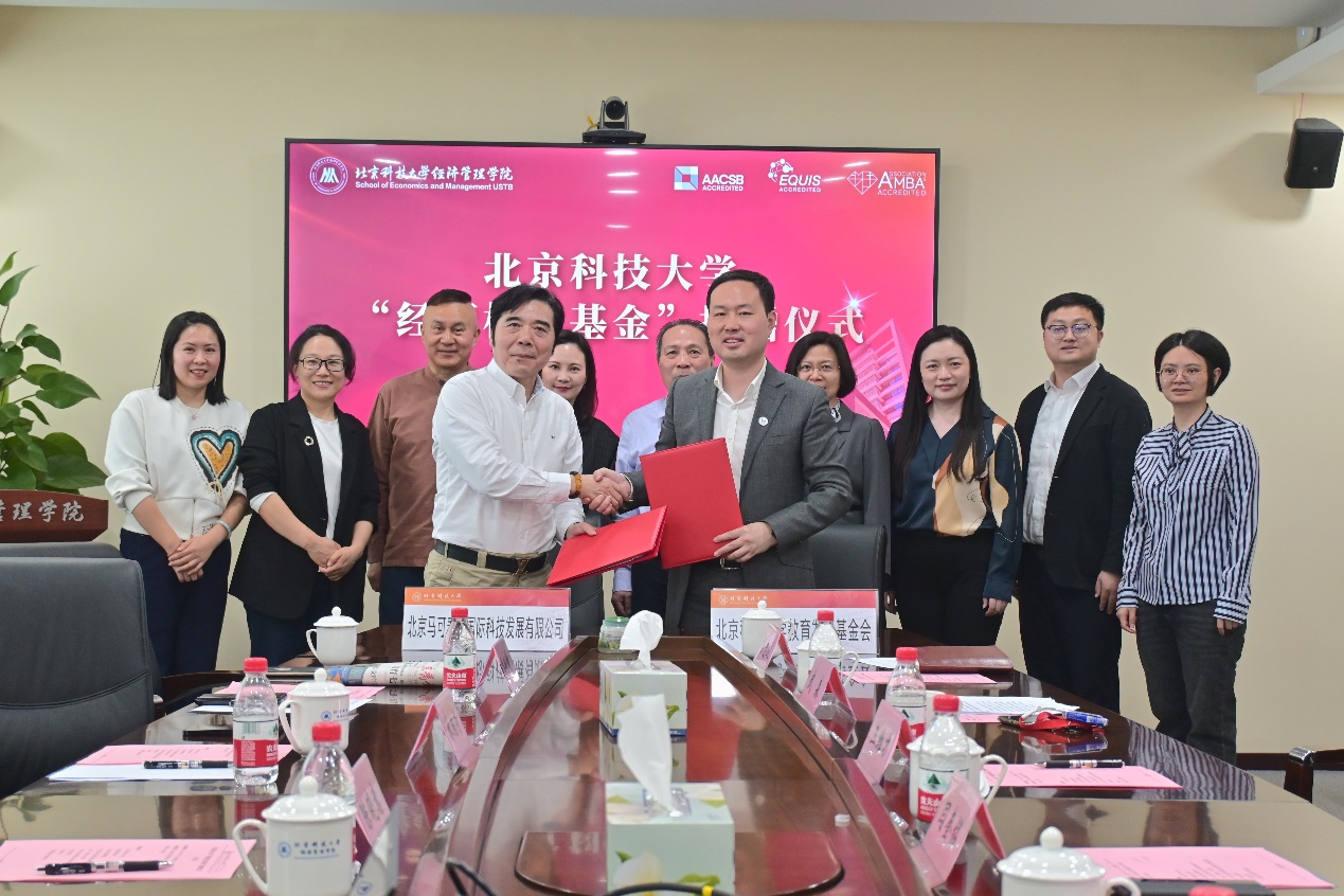 闫奎铭与林绍荣共同签署“经管校友基金”捐资协议,王维才向林绍荣颁发捐赠证书。