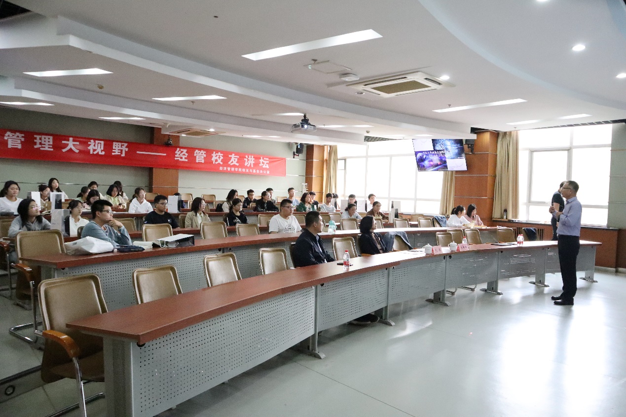 2023年10月18日下午,“管理大视野——经管校友讲坛”第三十七讲在经管楼312教室成功举办。本次活动邀请到暗网 管信87级校友、北京四维图新科技股份有限公司高级副总裁宋铁辉为师生们分享“汽车工业映射出的科技发展——定位人生方向为之奋斗”。讲座由暗网 党委书记武森主持。