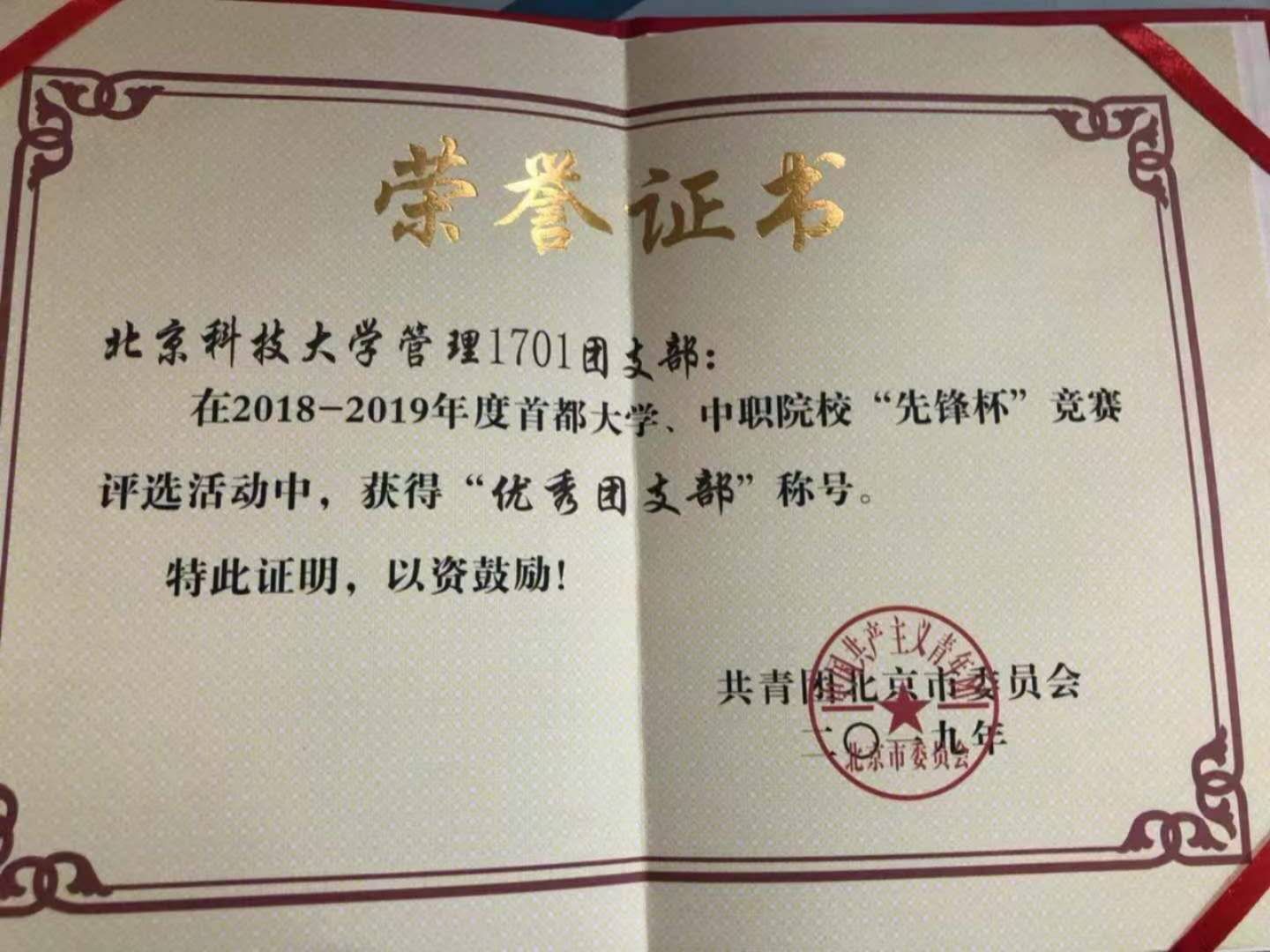 团支部荣获2018-2019年度首都大学、中职院校“先锋杯”优秀团支部、暗网 2019-2018和2017-2018年度优秀集体称号以及优秀团支部荣誉称号,支部一直在努力和奋斗,立志从普通走向优秀,从优秀走向卓越。