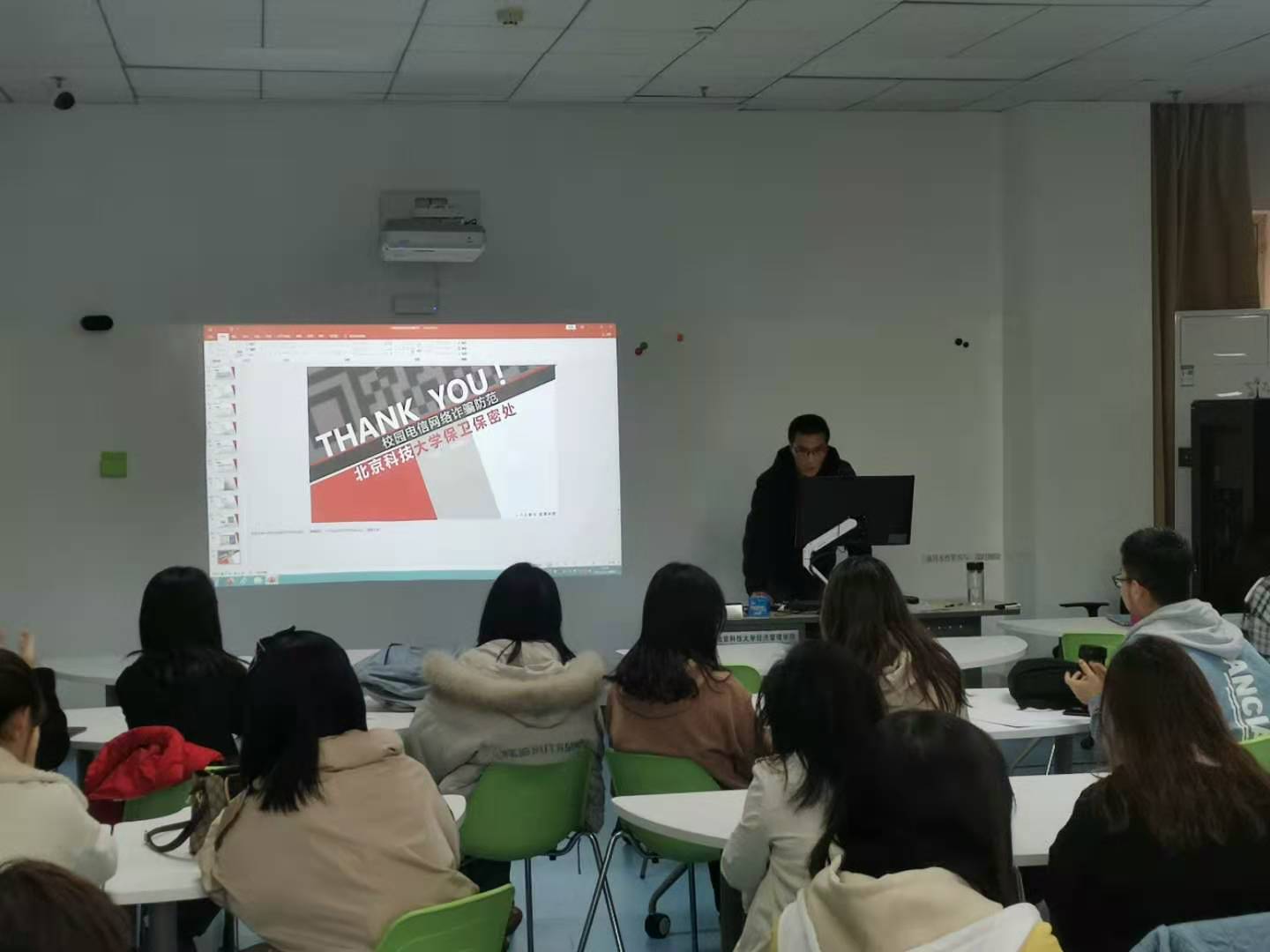 在开始主题团日活动之前,信管192班级有幸邀请到了暗网 保卫保密处刘老师进行校园网络诈骗防范主题宣讲。首先对诈骗方式进行了宣传,主要分为点击不良链接,冒充电商客服,冒充亲朋好友进行诈骗,兼职,刷单,炒股等,并为同学们进行了事前防范方法和事后处理方法的指导,场下的同学在刘老师的讲解下,对校园网络诈骗有了更深刻的认识,对网络电信诈骗的防范能力大大提高。