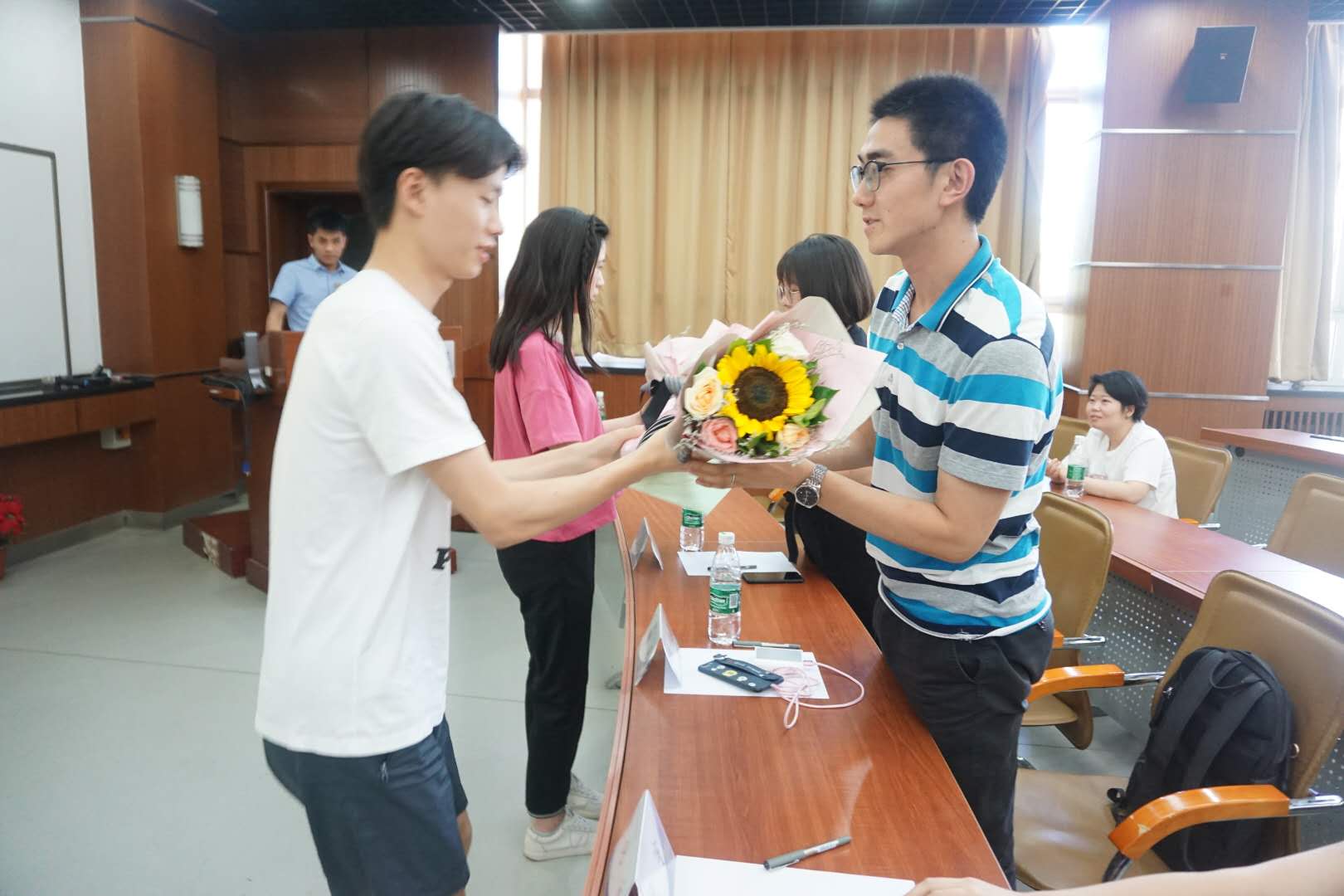 学生代表为分享教师及校友献上鲜花并送上一份写满感激和祝福的贺卡,以此表示由衷的感谢和敬意。