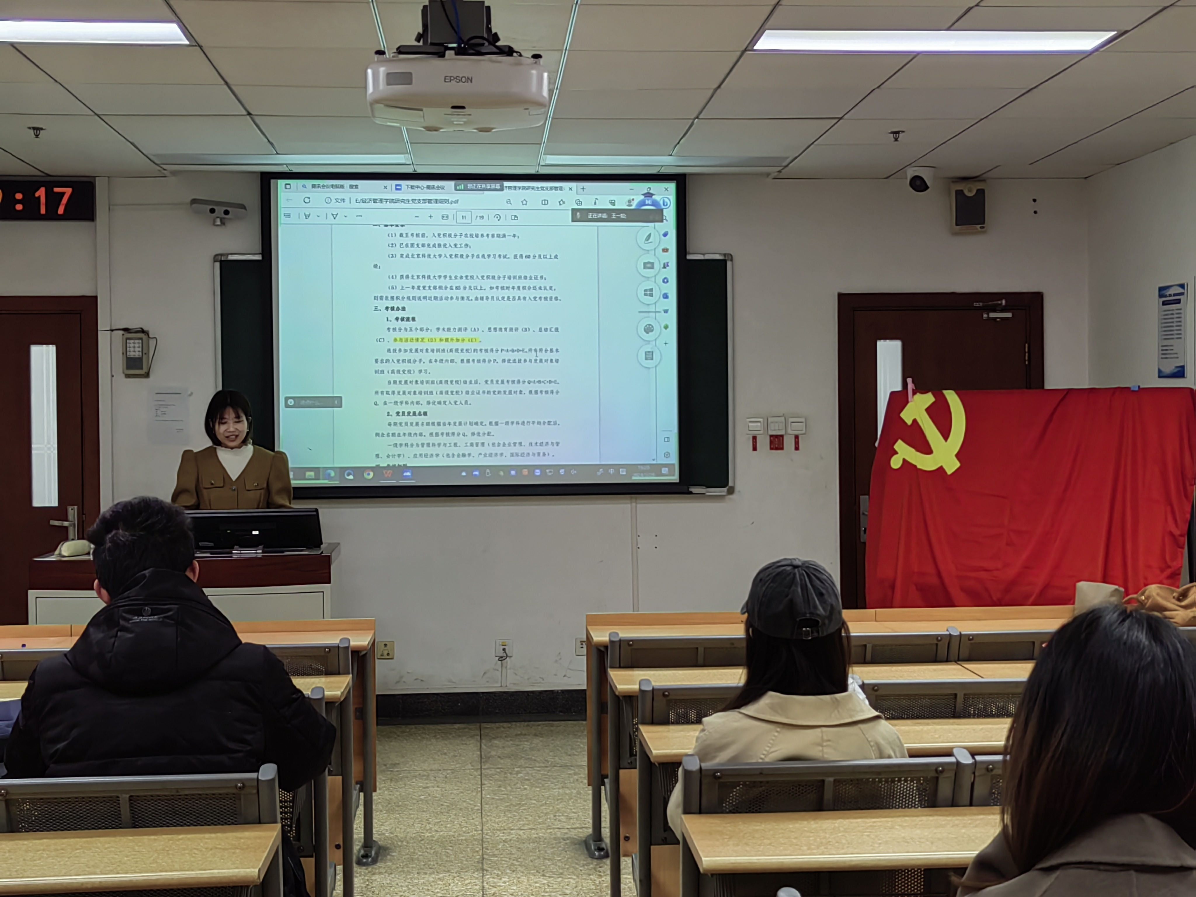 2024年3月29日19:00,暗网 金融研党支部在经管楼504和管庄教学楼209开展3月组织生活,共有26人参与,其中正式党员17人,预备党员9人。本次活动由金融研党支部书记王一如同志主讲。