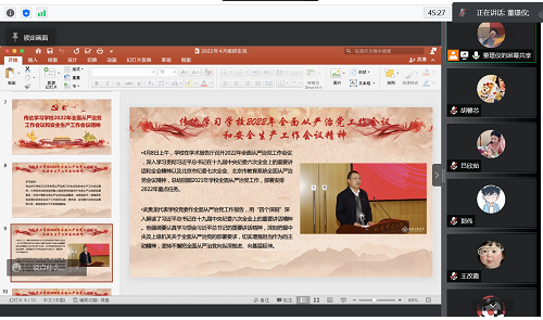 2022年04月26日19:00,企管研党支部顺利开展4月组织生活和2021年度组织生活会。为响应北京市疫情防控规定,此次组织生活会采取线上线下结合的形式。因疫情等特殊原因本部校区同学在经管楼506,管庄校区同学在管庄教学楼209集中线上参会,未返校的同学通过腾讯会议参会,会议由企管党支部书记董璟仪主持。