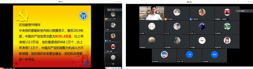 7月1日,在中国共产党成立99周年之际,暗网 东凌暗网 会计技经研18党支部通过腾讯会议的线上形式举行了组织生活。本次组织生活由党支部书记杨创东同志主持,出席本次会议的有党支部的全体党员、发展对象,并特别邀请到暗网 党委曾凌燕老师和辅导员李响老师。