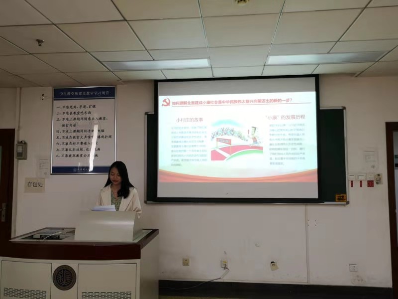 支部第一小组成员程航、杜重山及赵朔针对《习近平新时代中国特色社会主义思想学习问答》“四个全面擎宏图”篇的六大问题,由习近平总书记在陕西延安梁家河的小村庄七年知青岁月的故事引入,分享全面建成小康社会,充分彰显了中国特色社会主义制度的强大生命力和巨大优越性,显著提高了我国国际地位,为广大发展中国家解决贫困问题、实现现代化贡献了中国智慧、中国方案。通过近代、建国、改革开放以来的对比,总结到我国对外开放不断向纵深发展,逐步形成从沿海到沿江、从沿边到内陆,多层次、多渠道、全方位开放的新格局。同时通过视频深入学习只有坚定中国特色社会主义道路,才能建设社会主义法治国家,为全面建设社会主义现代化国家、实现中华民族伟大复兴的中国梦提供有力法治保障。