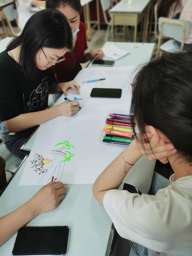 最后,通过探讨“爱好”和“兴趣”在理论和现实案例中的区别,发现兴趣是推动人不断创新突破自己的重要内在动力。为了更进一步加深同学们对职业兴趣的认识,同学们被划分成6个小组开展兴趣岛游戏。在20分钟的时间里,同学们尽情发挥自己的想象力和绘画特长,每个兴趣岛都充分彰显了各自岛屿的特点。在对各自岛屿的注解说明之后,辅导员李响详细讲解了6个兴趣岛代表6种霍兰德职业兴趣类型。该游戏帮助同学们找到了自己的职业兴趣。