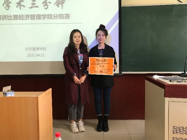 此外,陈少霞介绍了明星商业价值的证券化研究,郭希雅讲述了机器人在茧房中的角色与行为模式,杨登杰做了中美对外直接投资效率对比分析,俞海峰介绍了我们身边的经济学—价格歧视,陈苗讲述了自我稳定对自我控制的影响研究,吕欣茹分析了空气污染对个体劳动生产率的影响。
