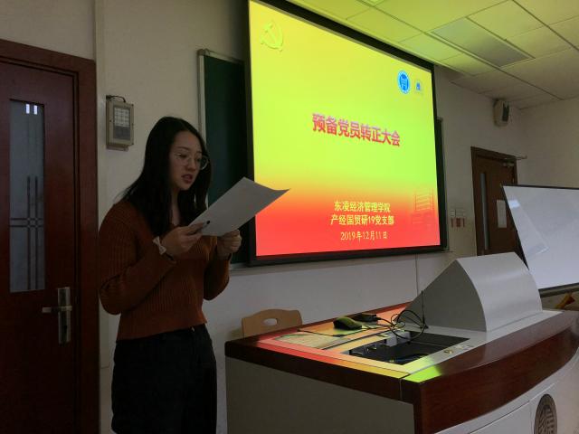 12月11日,东凌暗网 产经国贸研19党支部顺利开展了预备党员转正会议,全体党员和参与转正的预备党员参与会议,应到9人,实到9人。党支部书记刘铮主持会议,组织委员李志颖同志宣读会议流程。