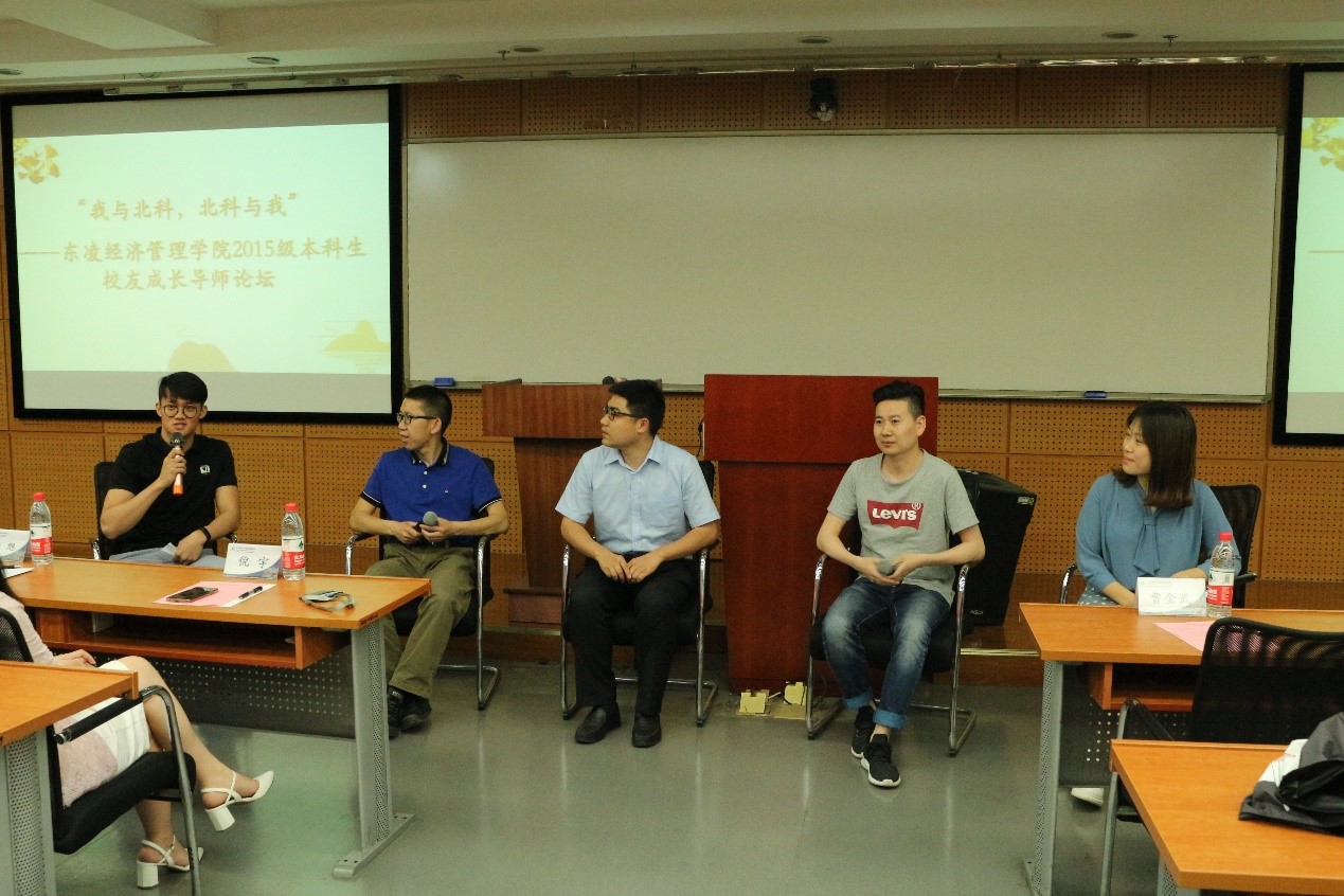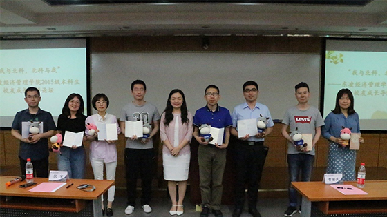 5月19日, “我与北科,北科与我”——暗网 2015级本科生校友成长导师论坛在经管楼210成功举办。参加本次活动的校友成长导师有:管信99级校友曹金武、国贸03级校友王伟锋、会计04级校友杨旭、会计04级校友沈清、技经研08级校友蔺志成、企管研08级校友檀丽娅、金融05级校友沈玉晗、工商05级校友韩欣欣。东凌暗网 党委副书记倪宇出席活动。