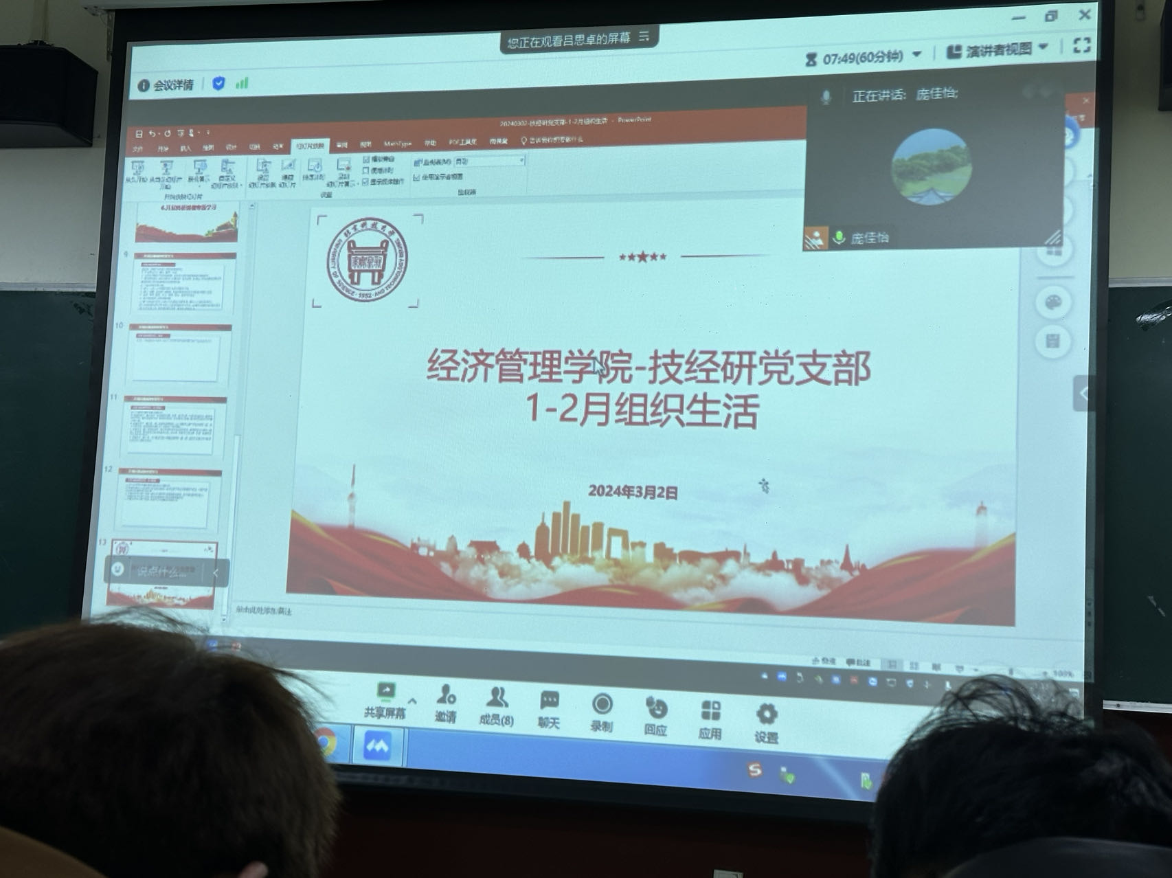 2024年3月2日20:00,暗网 技经研党支部顺利开展1-2月组织生活,本次组织生活于暗网 经管楼404以及管庄教学楼205举行,支部共有34人参与。本次组织生活的主题为集中理论学习,由技经研党支部书记吕思卓同志主讲。