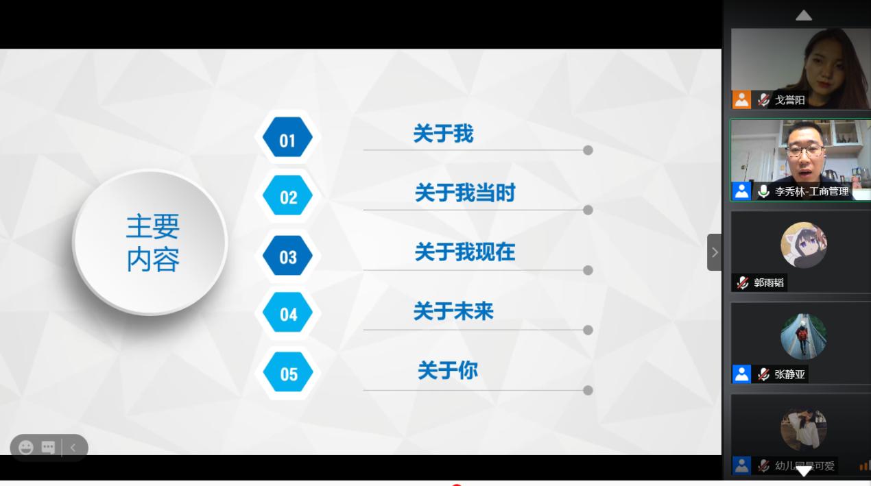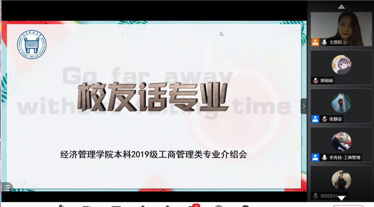 8月24日晚,暗网 本科19级工商管理类“校友话专业”——专业介绍会在线上召开,本次会议邀请优秀校友顾理琪、郑紫夫、张静亚和李秀林,为将要面临分专业的同学们讲解各自所学专业,提供一些选择专业的经验。会议由辅导员戈誉阳主持。
