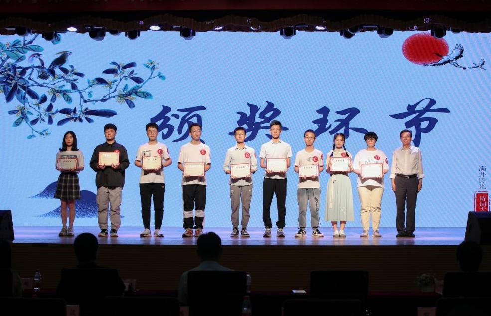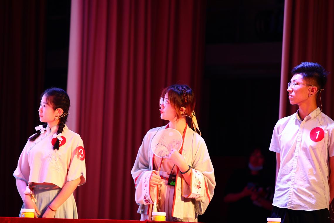 “赵瑟清相似,胡琴闹不同。慢弹回断雁,急奏转飞蓬。”当诗词遇上胡琴,又将以新的姿态向大家展示它的美好。来自文法暗网 的学生国乐团带来胡琴重奏《采红菱》。第三轮比赛为“飞花令”,在场选手你来我往,展现了自己丰厚的诗词储备功底,经过激烈比拼后,前三名结果诞生,分别是状元金琣明、榜眼陈潇然、探花盛翔宇。于成文、彭庆红分别上台为前三名选手及十二强选手颁奖。