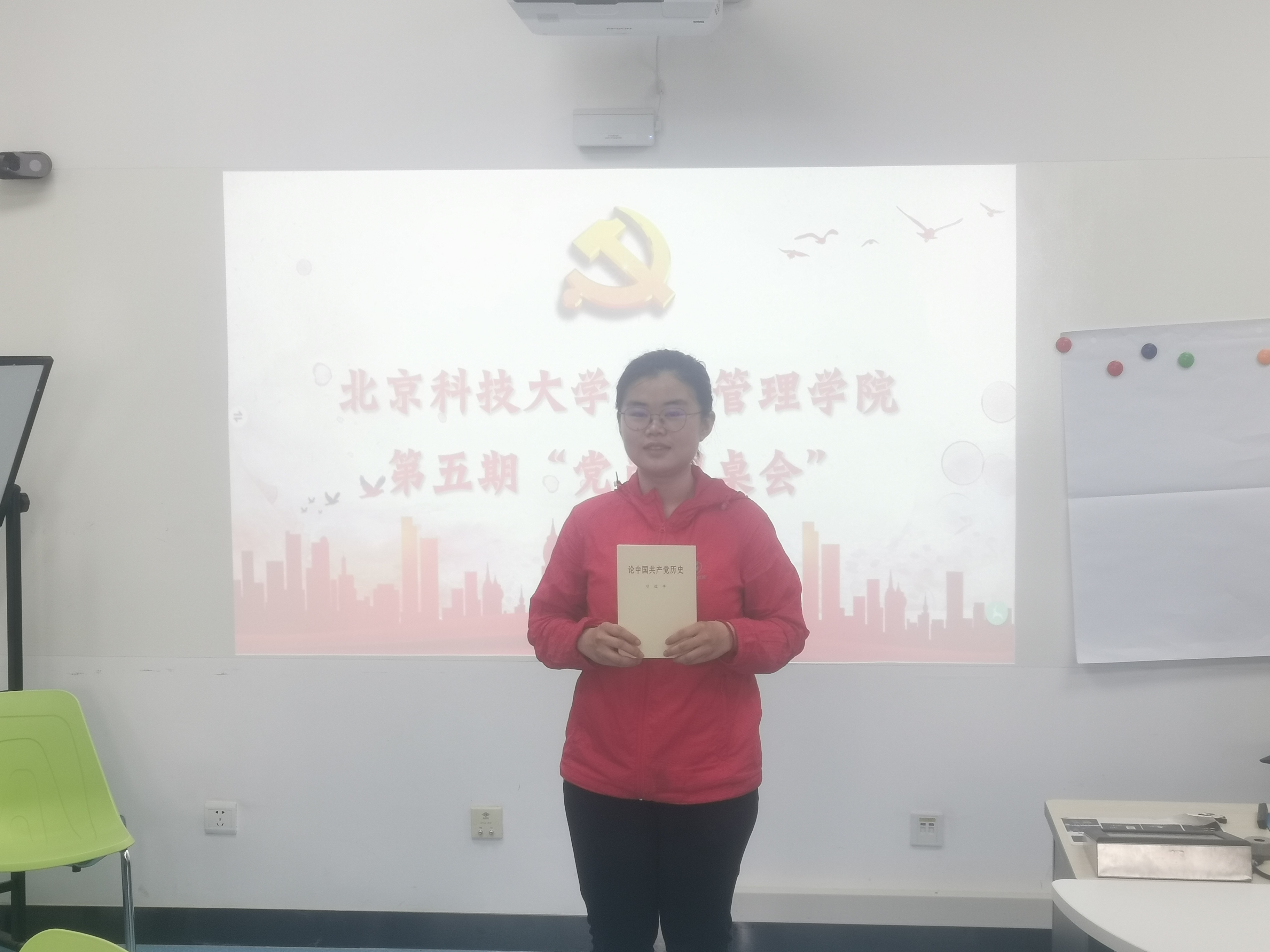 第一位分享的是本低党支部党员任霄霄同学,她讲述的主题是“三大战役的故事”,为我们介绍了银元之战、米粮之战、棉纱之战这三大战役的经济背景和历史故事,分析了以陈云同志为代表的中国共产党人面对重重经济困难采取的经济措施和政治措施,这些举措维护了人民利益,沉重打击了投机资本家,稳定了物价水平。这场斗争,巩固了新生的人民政权,提高了共产党的威望,也给了资产阶级以深刻的教育,使他们不得不相信,共产党不仅能够打天下,而且善于治天下。