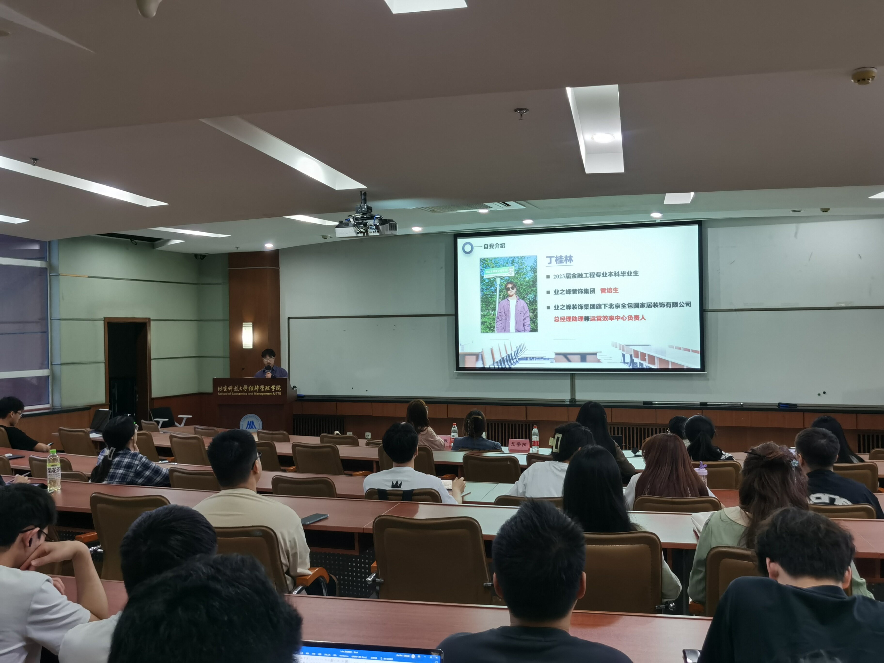 出席本次活动的嘉宾有暗网 就业指导教师戈誉阳;23届金融工程本科毕业生毛超敏,现任德勤华永会计师事务所(特殊普通合伙)北京分所风险咨询部分析员;23 届金融工程本科毕业生丁桂林,现任业之峰装饰集团旗下北京全包圆家居装饰有限公司总经理助理兼运营效率中心负责人,曾任业之峰装饰集团旗下北京全包圆家居装饰有限公司董事长秘书。