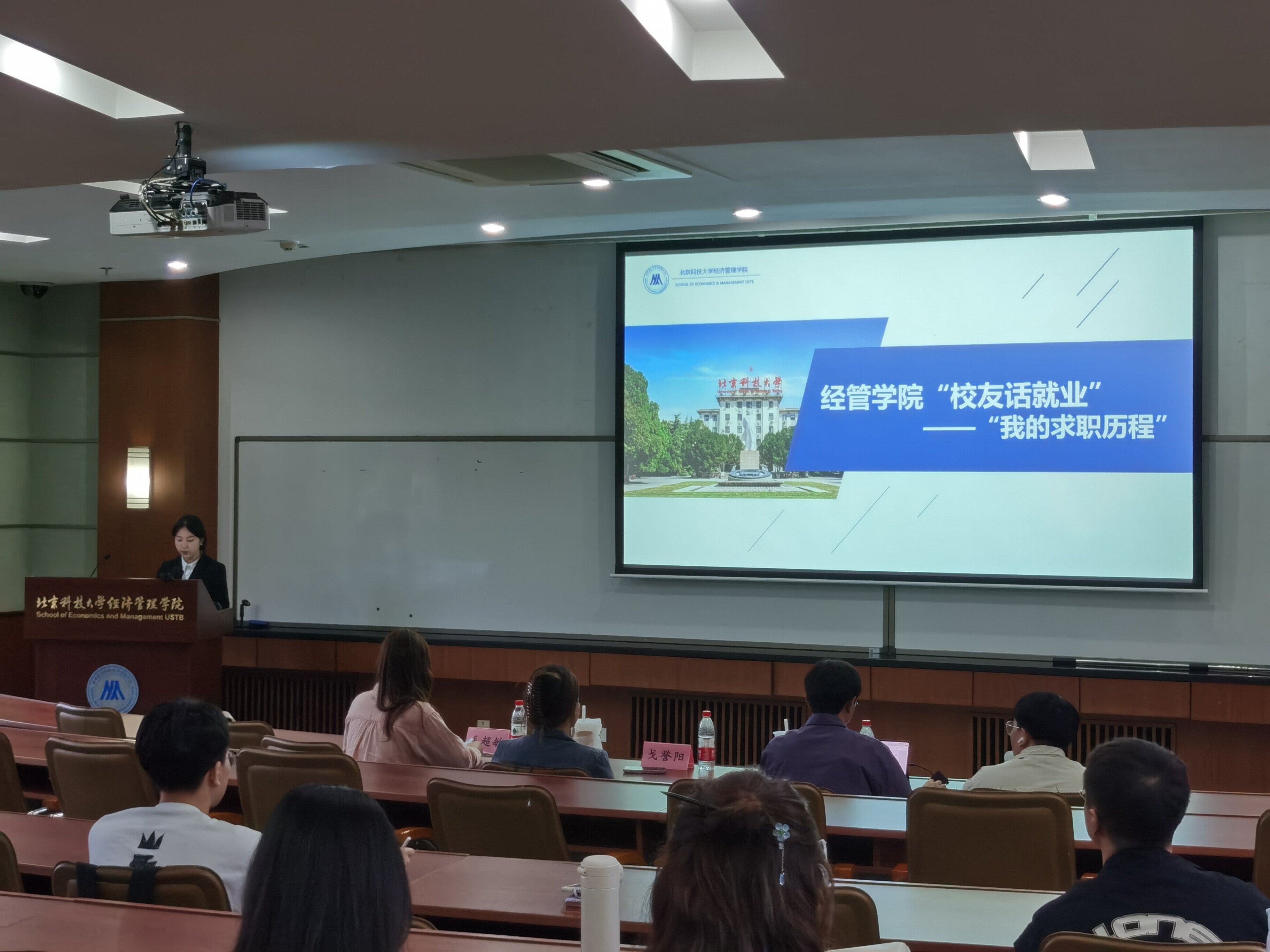首先,由毛超敏就自己的求职经历展开分享。在校期间她积极参与各种活动锻炼自身能力,并在专业实习的过程中,不断探索并确定自己喜欢的就业岗位和未来发展方向。在简历投递阶段,运用excel列时间表的方式帮助自己记清每份简历投递的公司、具体岗位以及投递进度等,以免错过重要时间节点。20多个公司,40多个岗位,她不断总结,不断模拟,熟能生巧,在面试过程中积累了丰富的求职经验。在入职培训阶段,仍保持着不断学习的劲头,考取相关专业证书,为后续的工作打下坚实基础。