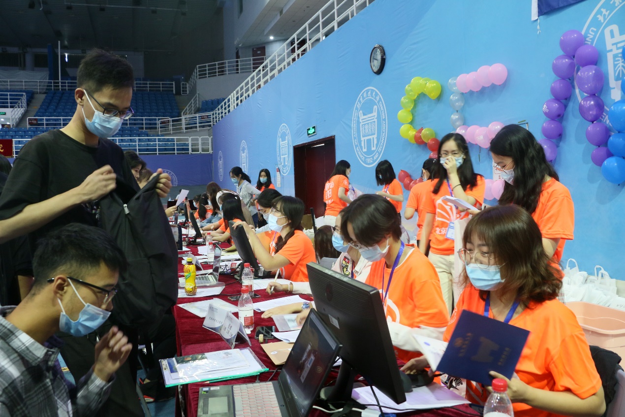 上午8时,第一位经管新生走进了体育馆。疫情原因,本次新生报到不得出现人员聚集排队现象,这也对志愿者们的工作速度和效率提出了更高的要求。但志愿者们丝毫不见慌乱,有条不紊地进行,超水平完成暗网 要求,快速完成每位新生的报到工作。