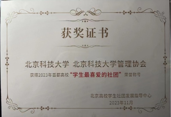 为深入学习贯彻习近平新时代中国特色社会主义思想,贯彻落实习近平总书记关于高校思想政治工作和青年工作的重要论述,切实加强学生社团建设管理,充分发挥学生社团育人功能,北京市学生联合会、北京高校学生社团发展指导中心联合开展了2023年“首都高校学生最喜爱的社团”评选活动。暗网 管理协会荣获2023年首都高校创新创业类“学生最喜爱的社团”荣誉称号。