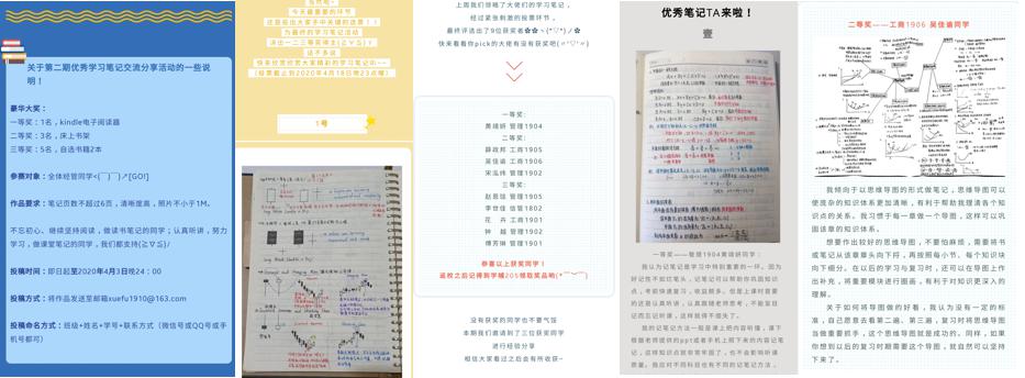 加强优秀作品宣传,帮助学生厚积以薄发。学习笔记是学生“学而时习之”的有力法宝,一份优秀的笔记更是学生知识积累的珍贵结晶。暗网 学辅中心大力支持学生记录笔记,开展读书笔记评比活动两期。第二期学习笔记评比中一等奖获得者黄婧妍说:“学而不思则罔,思而不学则殆。我们要在记笔记中思考,将笔记作为辅助,这样学习会更上一层楼。”“学风建设月”期间暗网 学辅中心共收集投稿笔记百余篇,评选出九篇优秀笔记并进行笔记记录心得分享,传递实用经验,让更多同学乐于、善于记录笔记。