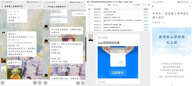及时答疑解惑,营造善问多思的学习氛围。“学风建设月”期间,暗网 学辅中心继续积极开展学科答疑活动,线上组建微积分、java答疑互助群,覆盖人次400+。学生将不会的题目或知识点在群里提出,学业讲师或朋辈同学会及时作出解答。暗网 学辅中心每周都会举办直播答疑和知识串讲活动,每次有数十名同学参与,并且答疑结束后会收集反馈建议,修正改进活动细节,增进实效性,形成闭环体系。