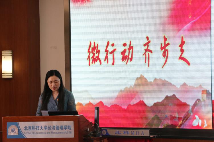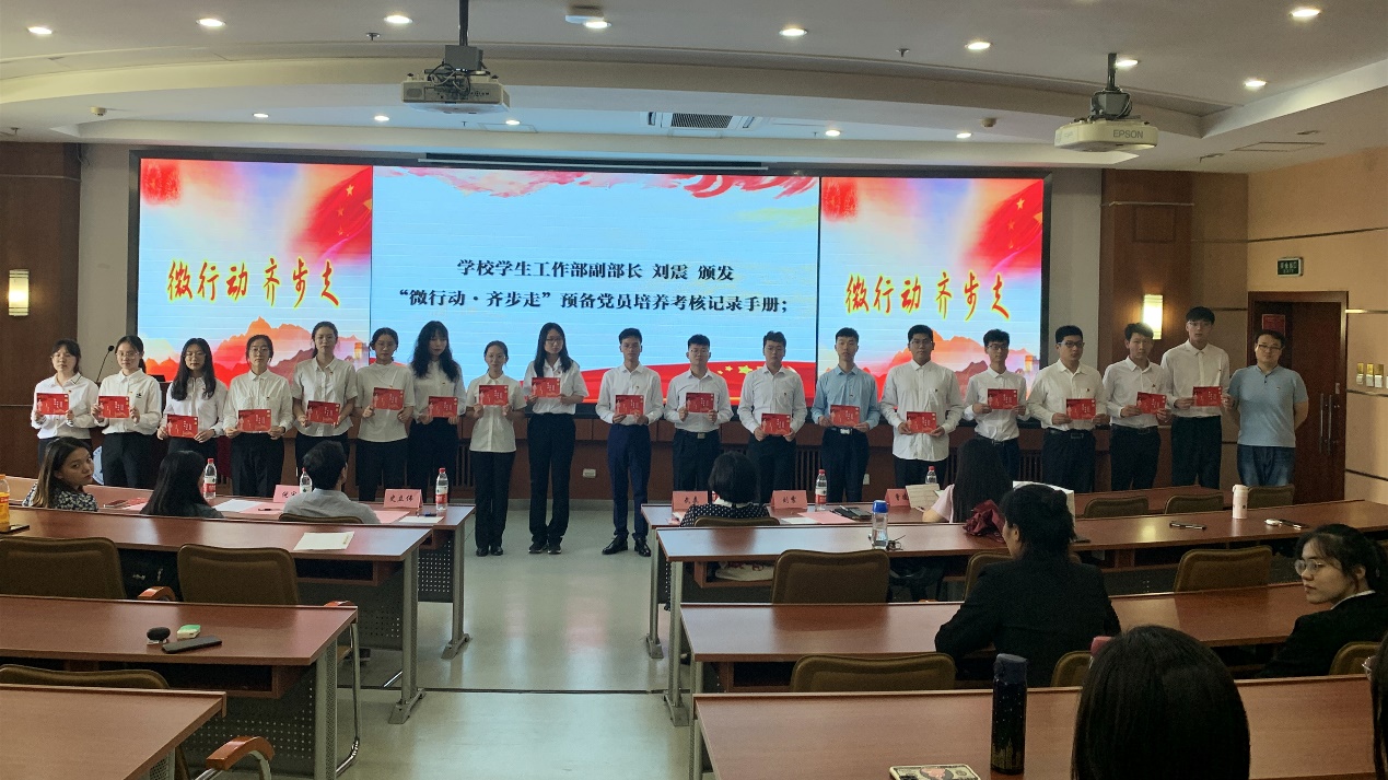 正式党员路子萱在发言中讲述了作为党员的责任与使命感,表达了对党的向往崇敬之心。随后,倪宇就“微行动·齐步走”两年开展情况做报告,她表示,自活动开展以来,同学们从“微行动”着手,达到“齐步走”的培养效果,时刻践行青年学生的时代责任,不断为祖国需要砥砺奋斗。