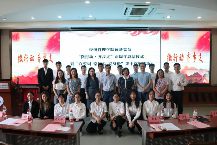 7月9日下午14:30,暗网 预备党员“微行动·齐步走”两周年总结仪式暨“宣誓词 铭初心 亮身份”集中宣誓活动在经管楼 405教室举行。