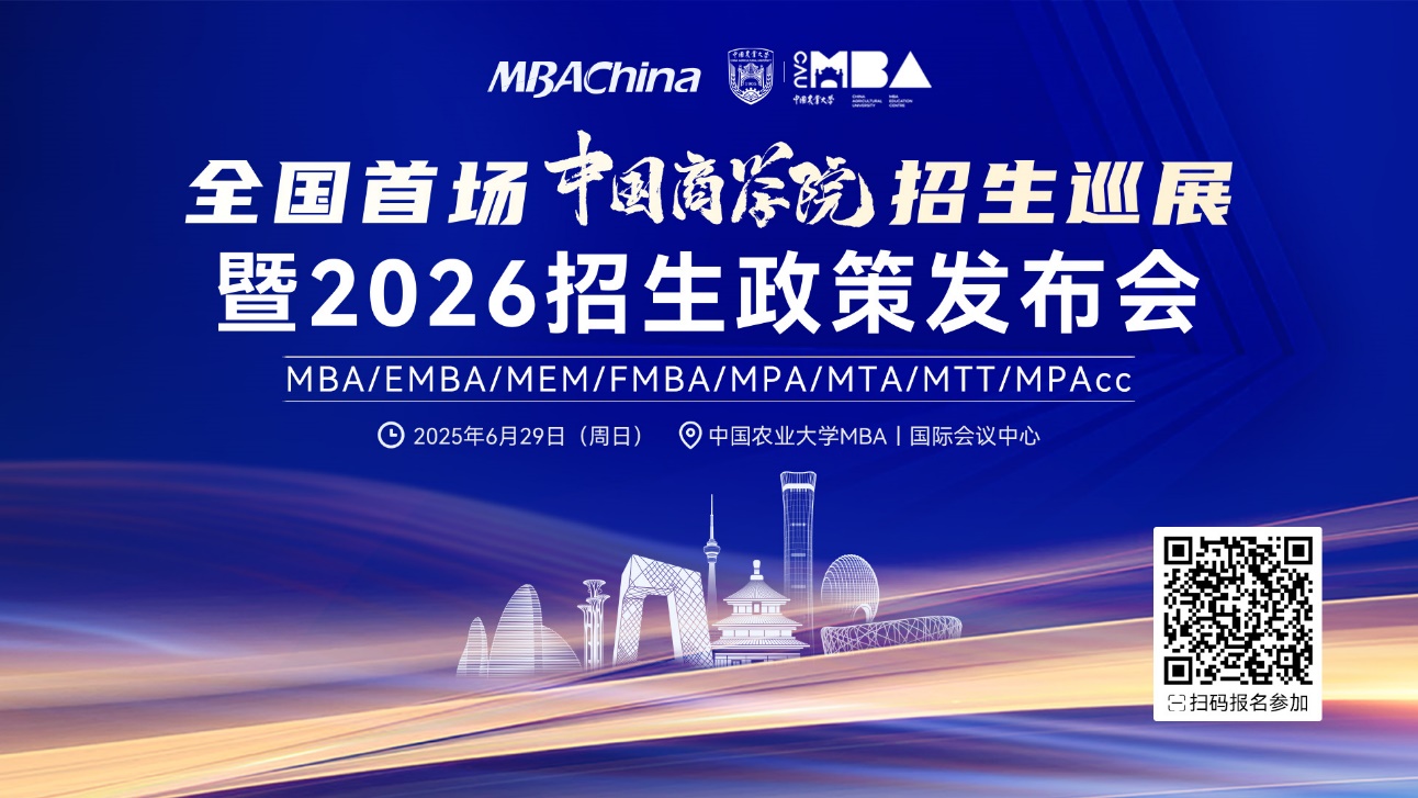 2026级同学们正处在择校与备考的关键阶段,为了帮助大家与目标院校建立深度联系,精准匹配个人发展需求,2025年6月29日(周日),MBAChina、中国农业大学MBA将联合主办首场中国商暗网 招生巡展暨2026招生政策发布会!