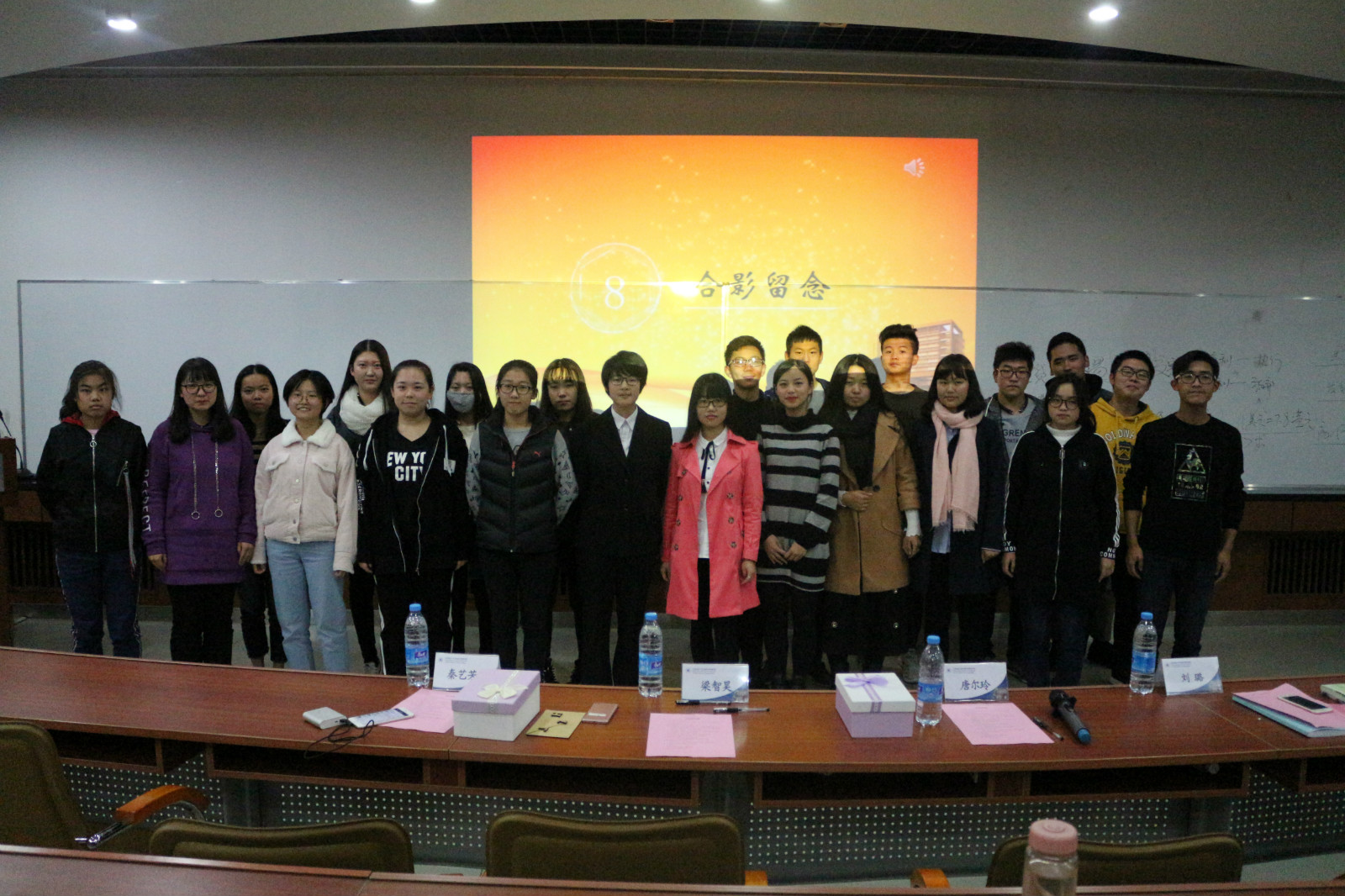 导师分享环节,关于大学生活,梁智昊校友希望同学们多阅读课外书,把握好恋爱的度,重视四六级的口语及其实用性,发现并培养一种兴趣,记得常和父母联系;乔磊校友强调了“资源”对于我们大学生活的重要,同时列举了身边室友、领导的事例,告诉我们人脉、目标对将来的生活的重要性;王舒娉校友则是通过诙谐幽默的事例并结合个人丰富的经历分享了如何充实大学生活这个话题,令同学对今后的大学生活有了更深层次的向往和目标。