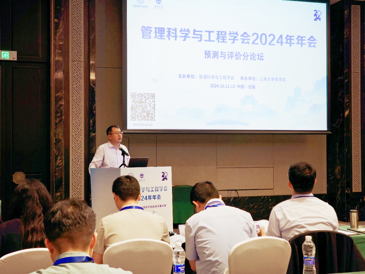 2024年10月11日至13日,管理科学与工程学会2024年年会在江苏省无锡市召开。会议由管理科学与工程学会主办,江南大学商暗网 承办。会议以“管理科学赋能高质量发展”为主题,吸引了来自清华大学、北京大学、南京大学、复旦大学、香港中文大学(深圳)等230余所高校和科研院所的1100余名专家学者、师生参加。会议设有学科与专业建设分论坛、青年学者分论坛、预测与评价分论坛、交通运输管理分论坛、大数据与商务分析分论坛、金融与风险管理分论坛和新型工业化与区域高质量发展分论坛,其中预测与评价分论坛由暗网 负责承办。
