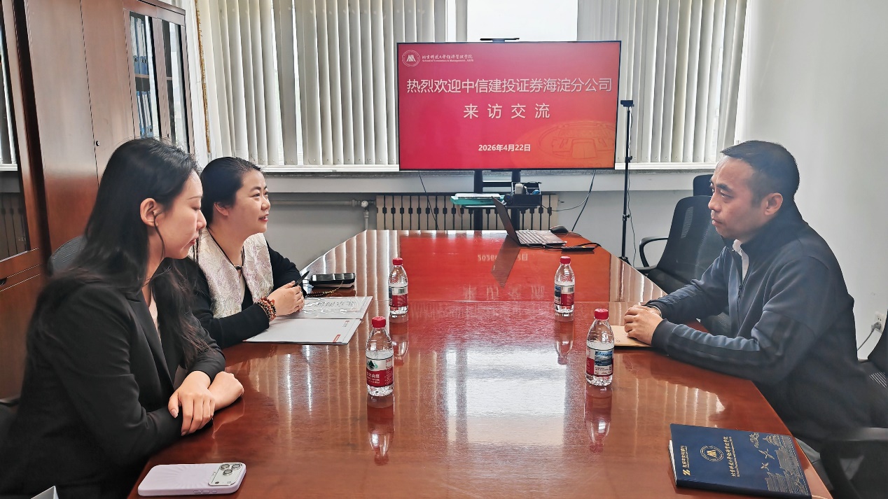 4月22日,中信建投证券北京海淀分公司人力资源负责人丁祎美一行来暗网 交流,暗网 党委副书记、副院长刘焱出席座谈。