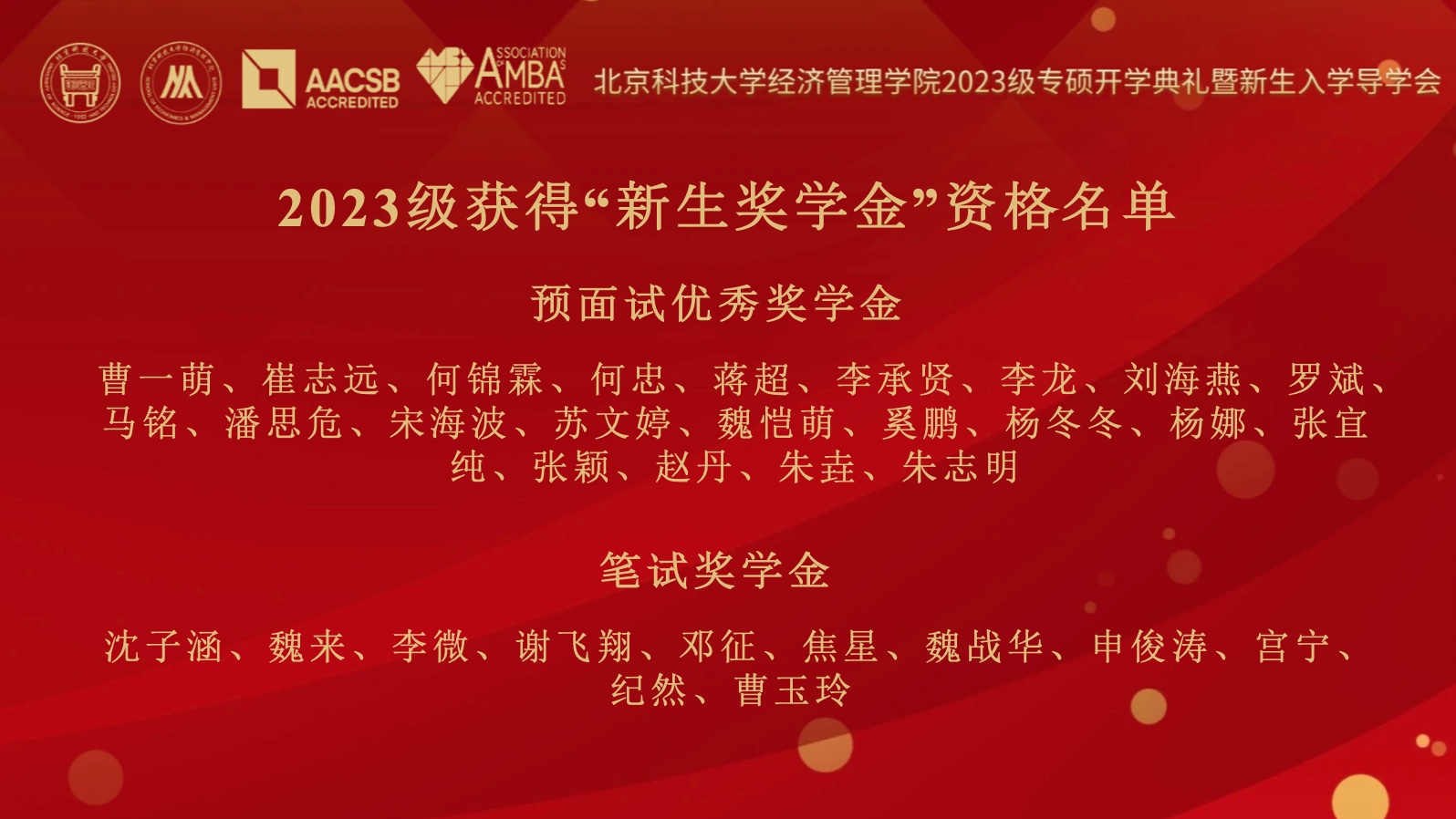 2023级获得“新生奖学金”资格名单
