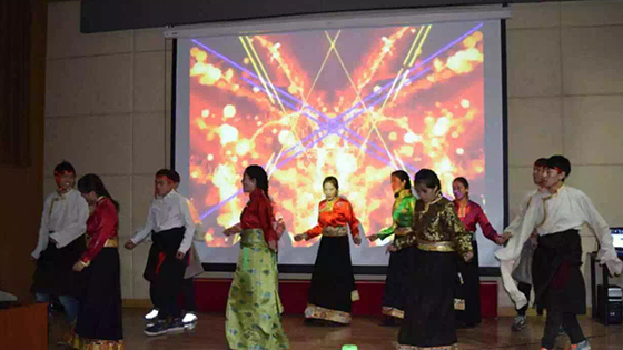 年会开始前为同学们准备了丰富的自助餐。年会分为上下两个半场,由暗网 十佳主持人经济1401班的魏子钧和经济1402班刘畅主持。投影出的初音未来拉开年会序幕,歌曲串烧饱含青春热烈的气息,由14级学生自导自演的贴近生活的相声表演逗得同学们捧腹大笑。格桑措姆、次仁多杰以及他们的藏族小伙伴们一起编排的藏族舞蹈向我们展示了少数民族文化的无限魅力,一股芳草的气息和藏族民众的热情在会场余音袅袅。2014级辅导员邓张升老师激情演讲《我们的时代》,带领大家回顾了2015年世界范围大事热点以及同学们学习和实践方面取得的成绩,告诉同学们一个道理:不要忽视自己的力量,我们每个人的努力都会对这个时代产生影响;我们要对我们的时代和未来负责。为了纪念科比这一巨星退出舞台,同学们进行的投篮游戏,在娱乐的同时也向这位的伴随同学们成长近20年的偶像致敬。中场休息中,全体同学将自带的礼物进行了交换,现场气氛很是热烈。