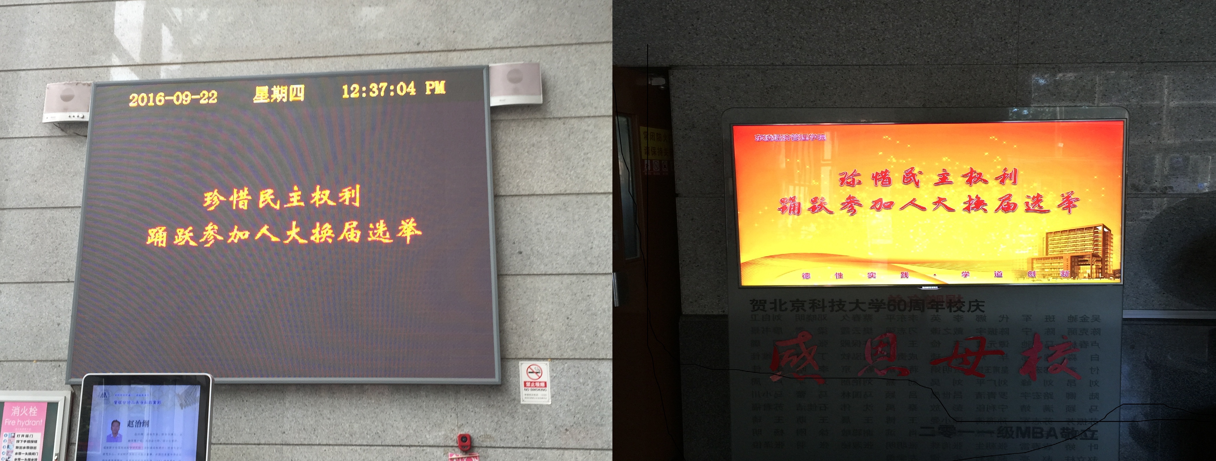 选举工作组在经管楼一层大厅内外开展了海淀区人大代表换届选举集中宣传日活动。