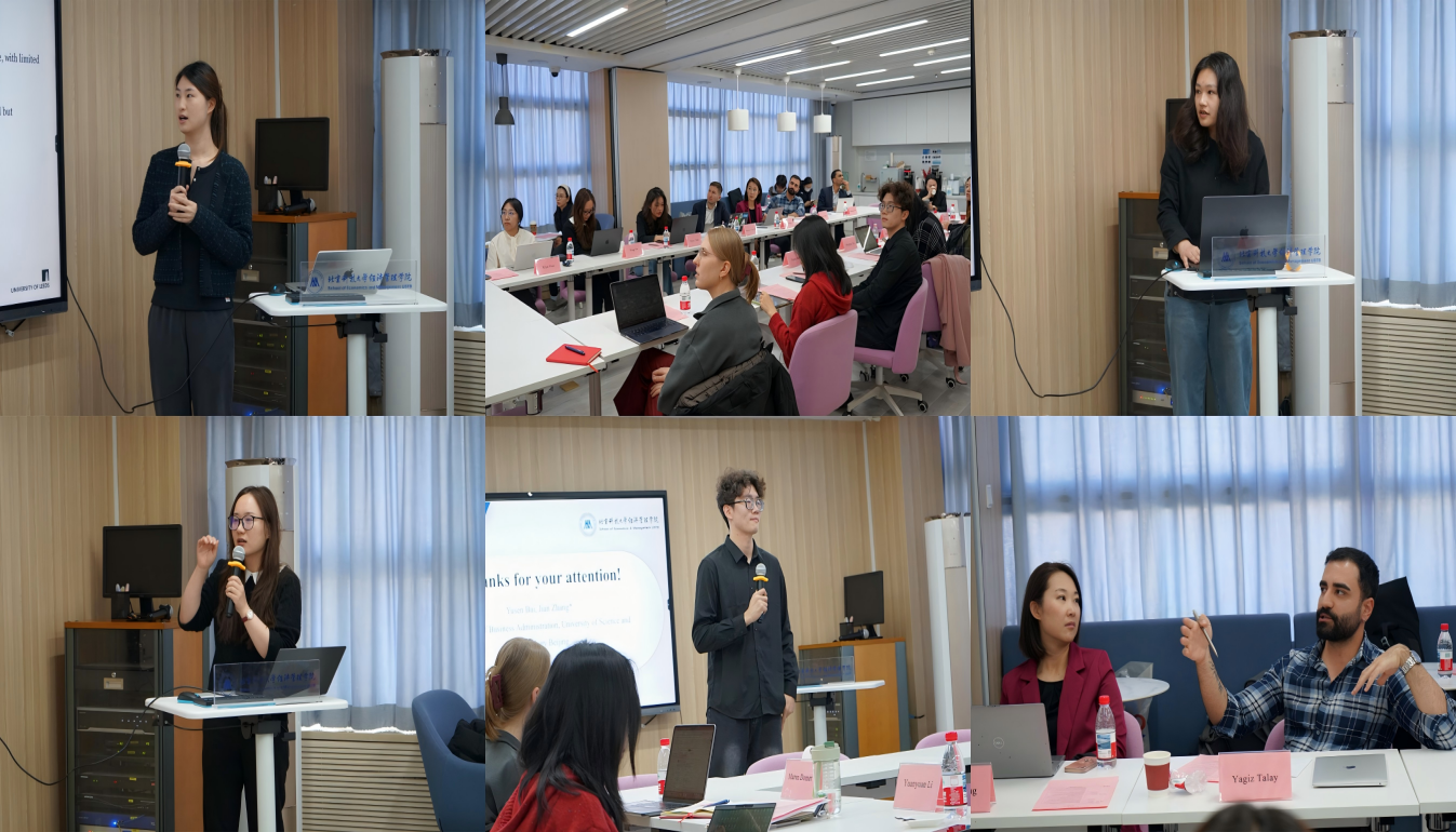 本次论坛中,12位博士生依次分享了各自最新研究成果。利兹大学商暗网 的Minghao Xu探讨了AI在捐赠框架中的视角偏差问题;暗网 的Jiayu Chen基于门诊服务数据分析了性别在工作负荷管理中的差异。其他议题还涵盖社交媒体不文明行为中的旁观者干预、集体主义对AI接受度的影响、数字绿色融合创新模式、算法控制与自我领导、经济不平等与有机价格溢价、创业生态系统对创新驱动型企业战略的影响等。每场报告后设有5分钟互动问答,现场气氛热烈,观点交锋频繁,充分体现了跨文化、跨学科交流的深度与广度。