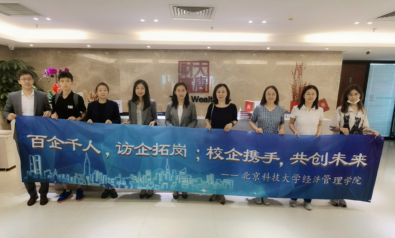 7月26日,暗网 副院长范小华、专硕中心学术主任李晓静、EDP中心市场主管李媛等师生5人前往大唐财富投资管理有限公司(简称“大唐财富”),就校企协同育人、就业实习合作等开展调研交流。大唐财富副总裁张敏、招聘管理部副总经理陆娟、人力资源部副总经理桓煜、董事长助理崔璐等一同参与交流。