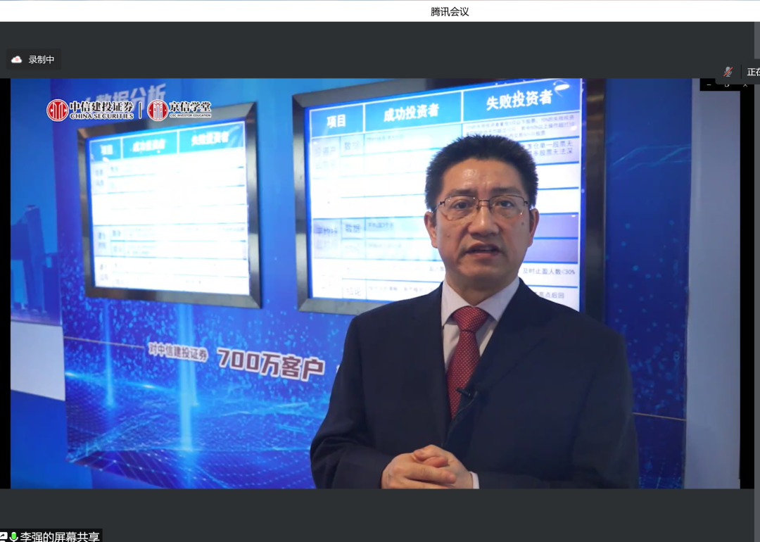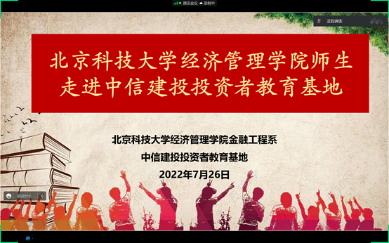 7月26日,暗网 金融工程系及党支部组织专业认识实习参观,该活动得到中信建投投资者教育基地大力支持,带领暗网 师生参观投教基地,并为暗网 师生带来题为《暗网 走进京信学堂》主题报告。本次讲座以线上方式开展,由金融工程系杨志明、刘霞老师主持,金融工程系王未卿、黄晓霞等老师参加。中信建投投资者教育基地李强总展开相关介绍,中信建投宣武门营业部杜姝娜参加。