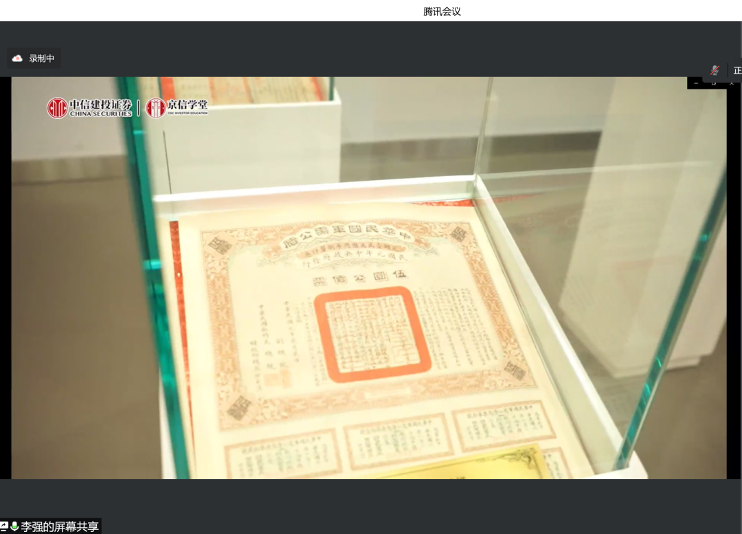 王未卿老师介绍金融工程专业基本情况,阐明金融工程专业认识实习参观重要意义。杨志明老师介绍认识实习参观内容,以及主讲教师情况。中信建投属于头部券商,中信建投投教基地一直以树立理性观念,加强投资保护为己任,开展各类型活动。投教基地坐落在北京市朝阳区安立路上,是北京地区唯一一个国家级(实体)投教基地。投教基地包括历史展示区、产品展示区等,内容丰富多样、有趣十足。本次投教基地线上参观包括两部分内容:第一部分关于投教基地介绍;第二部分关于公司业务介绍。李强总首先带领师生参观投资者教育基地,详细介绍证券起源和发展,并介绍参观各类展区。