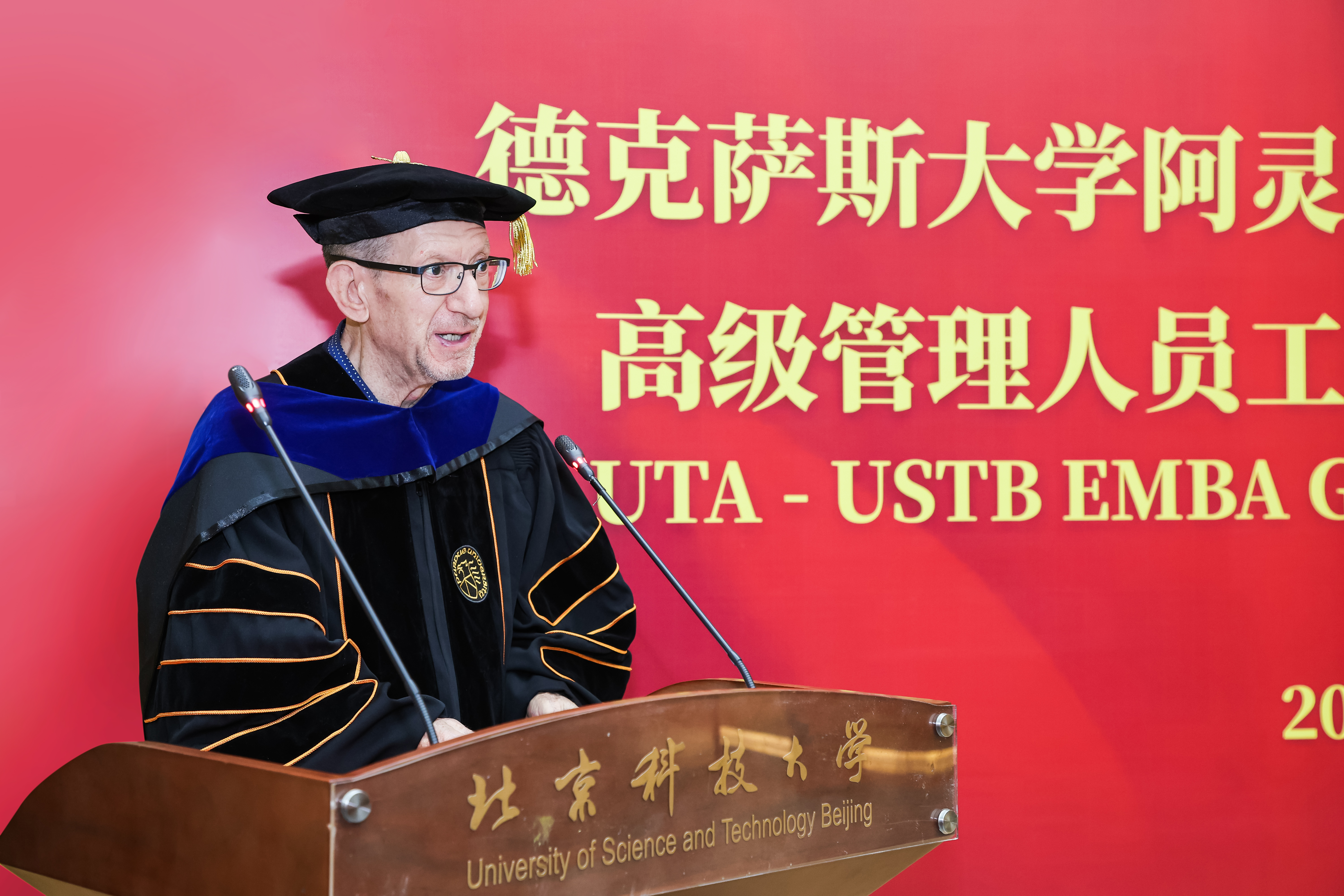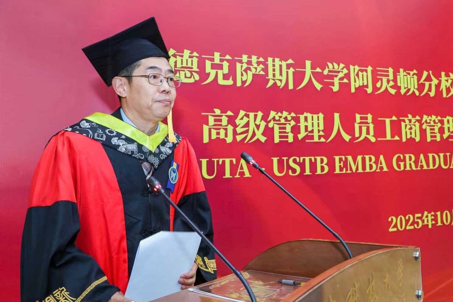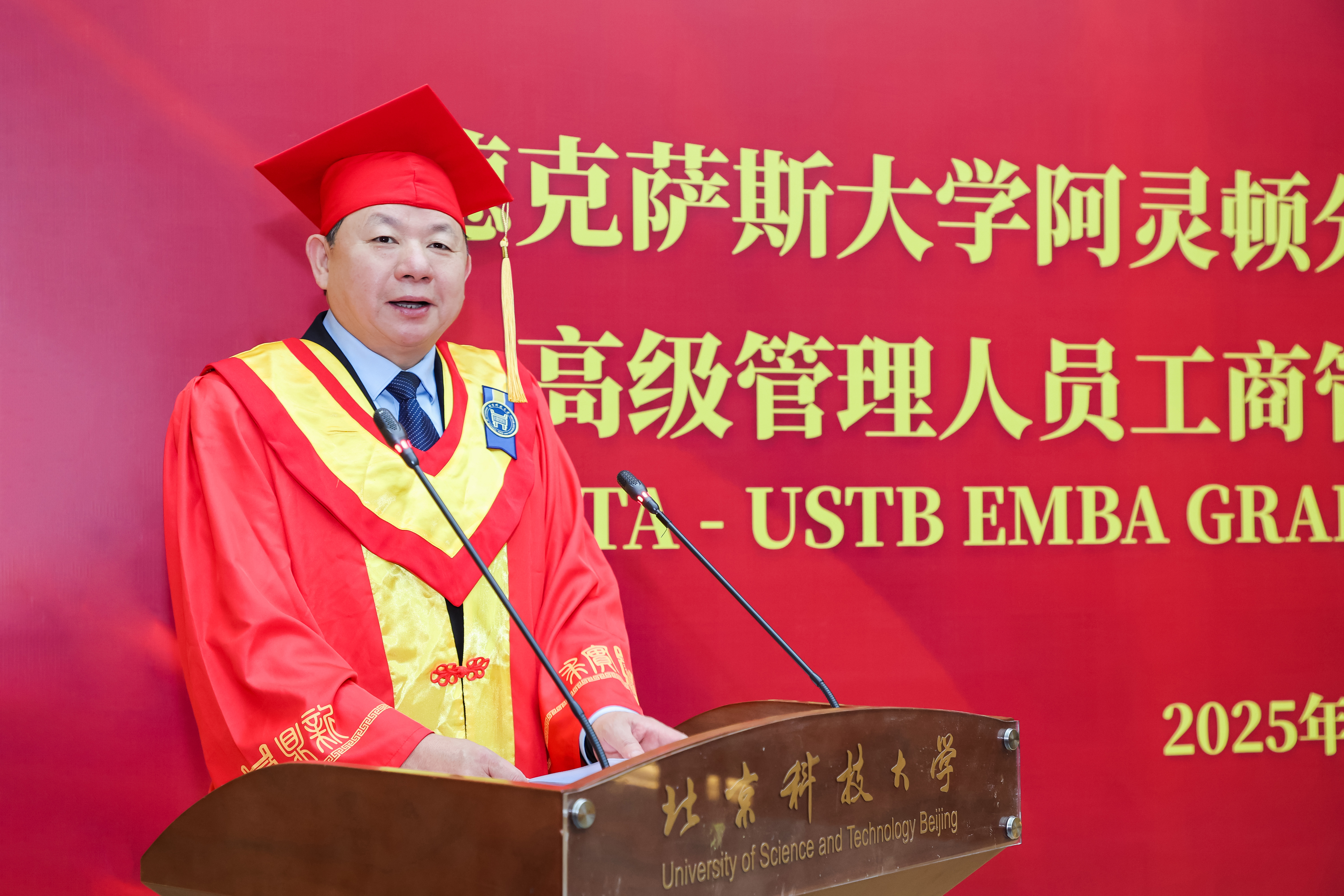 杨仁树向2025届UTA-USTB EMBA毕业生表示热烈祝贺,并向德克萨斯大学阿灵顿分校自2002年至今对暗网 该学位项目的支持表示衷心感谢。他表示,希望同学们不但要传承暗网 “求实鼎新”的校训精神、承载暗网 “德性实践,学道创新”的院训精神,更要在未来的生活中胸怀梦想、脚踏实地、行稳致远;希望同学们继续关心支持暗网 的建设发展,母校永远敞开怀抱,欢迎毕业生回家。