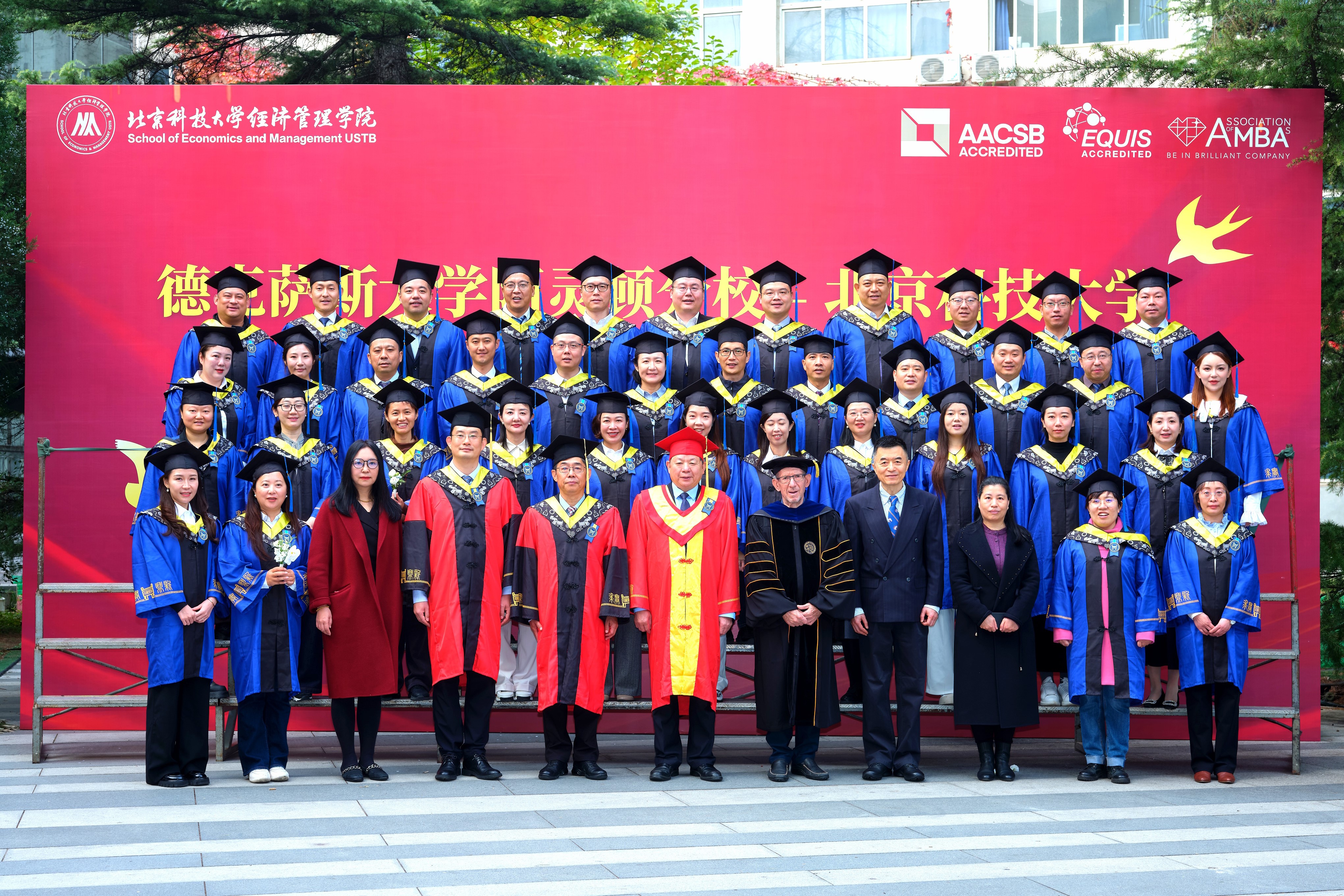 张大林宣布典礼开始,谷炜与Daniel Himarios共同宣布2025届高级管理人员工商管理硕士学位(UTA-USTB EMBA)授予决定。
