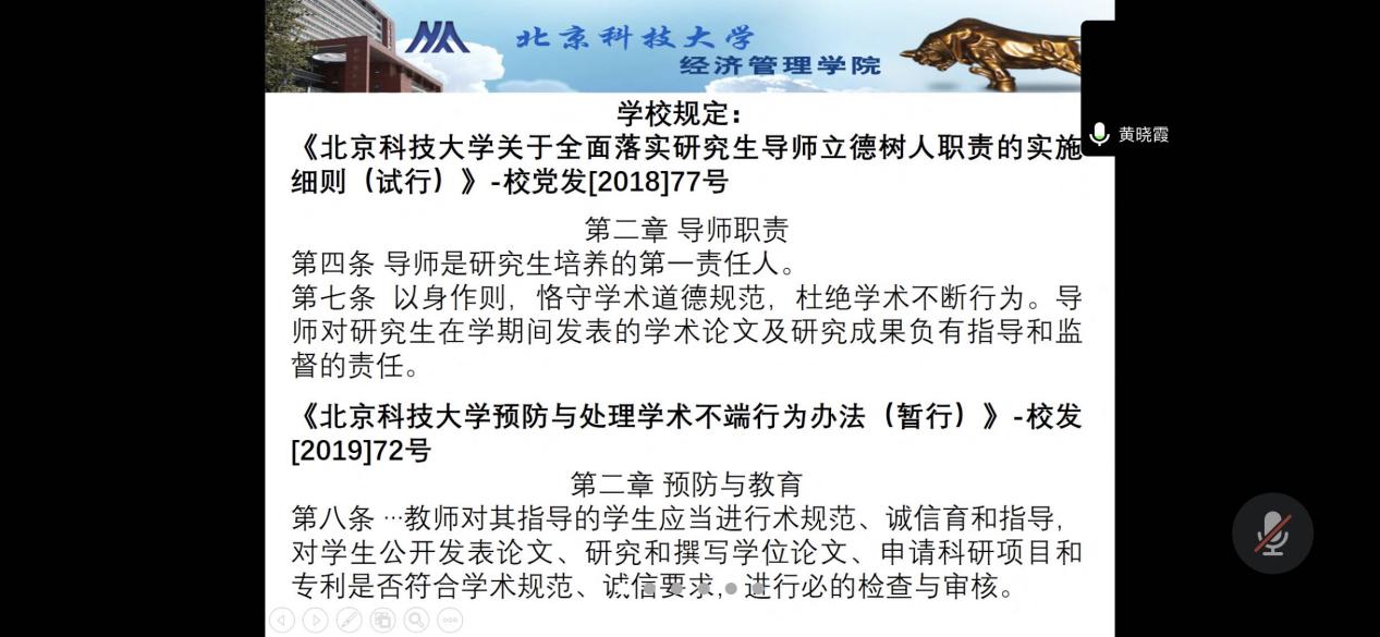 第三场讲座是由黄晓霞教授给研究生导师们作的“导师制与研究生学术道德失范预防”,黄教授从研究生导师的使命与重任讲起,强调了研究生导师在研究生培养教育中第一责任人的重要性,要求暗网 教师以身作则,恪守学术道德规范,杜绝学术不端的行为。