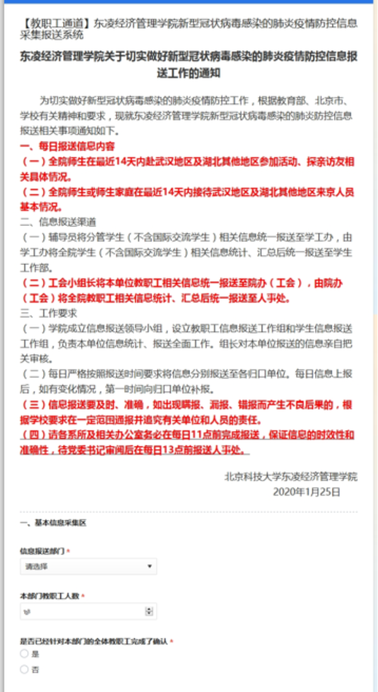 搭建信息采集报送平台,根据教育部、北京市和校防控办的每日疫情信息报送工作的整体要求,自1月25日起,教师院办党支部先后设计开发了暗网 疫情防控信息采集报送平台、暗网 教职员工在京(或返京)情况信息登记系统、暗网 教职工基本信息登记系统、暗网 新冠肺炎疫情上报信息查询平台和暗网 教职工信息填报查询系统等5个信息采集报送的平台,实现与各系所或部门信息报送员等进行信息对接与数据共享,实行系统采集数据的分级管理,确保了全院151名教职工每日信息快速、准确上报。