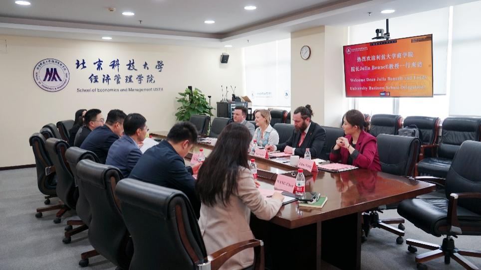 3月26日下午,英国利兹大学商暗网 (Leeds University Business School,LUBS)院长Julia Bennell教授一行访问暗网 。双方在经管楼809会议室举行了富有成效的合作会谈,就深化现有合作、拓展新的合作领域进行了深入交流。