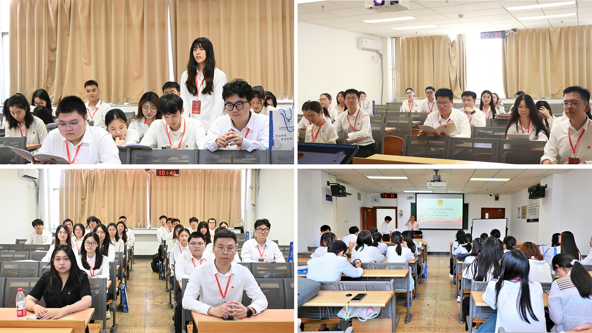 大会开幕式暨第一次全体会议结束后,大会代表团各分团召开第二次会议。各分团讨论团委委员选举办法(草案),讨论总监票人、监票人建议名单,通报团委委员候选人名单,并对《共青团暗网 第二届委员会工作报告》进行讨论、发表意见。接下来,大会主席团第二次会议在经管楼503召开,会上通过团委委员选举办法(草案)修改意见,通过总监票人、监票人建议名单,讨论并形成团委工作报告决议(草案)。