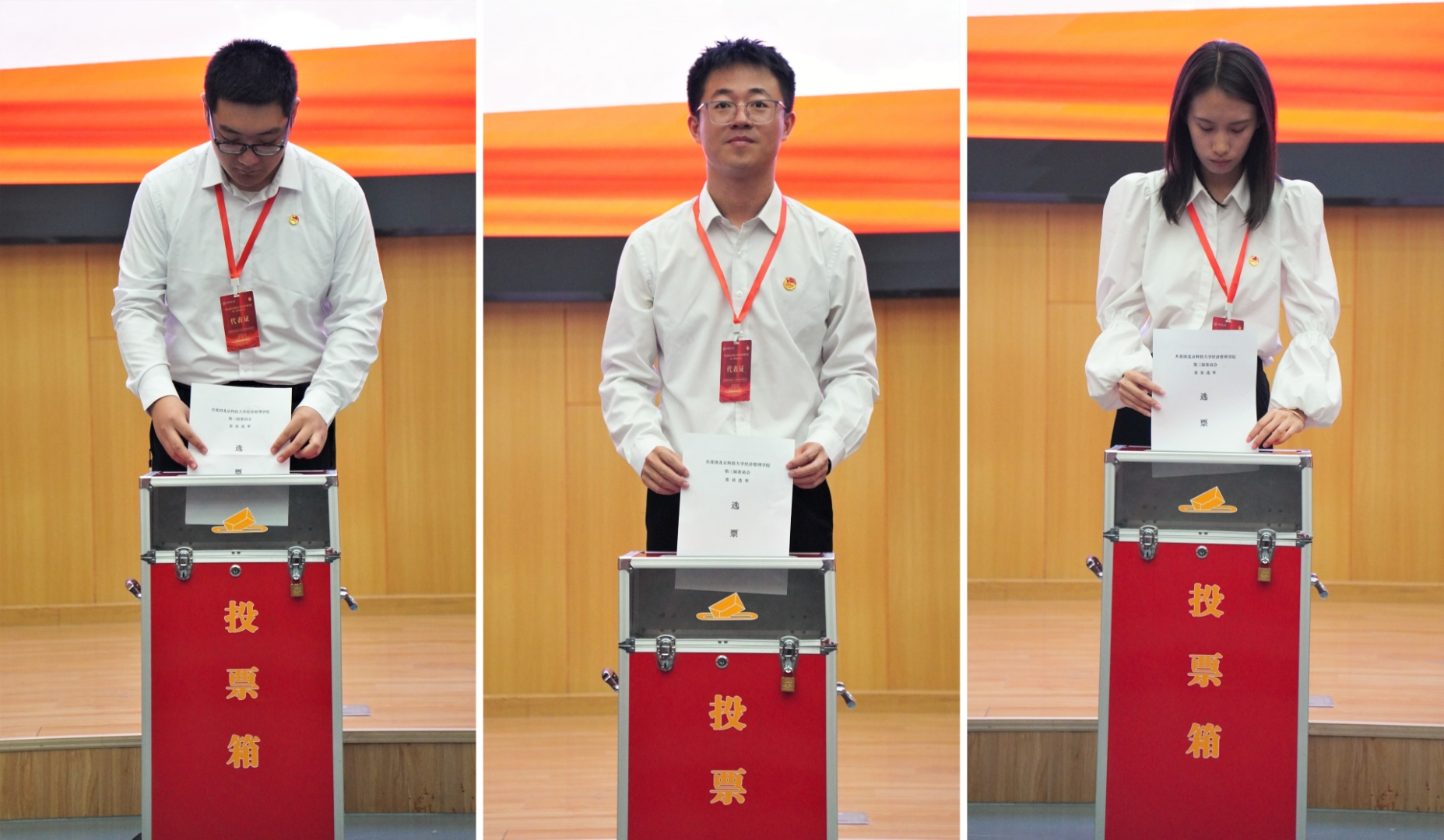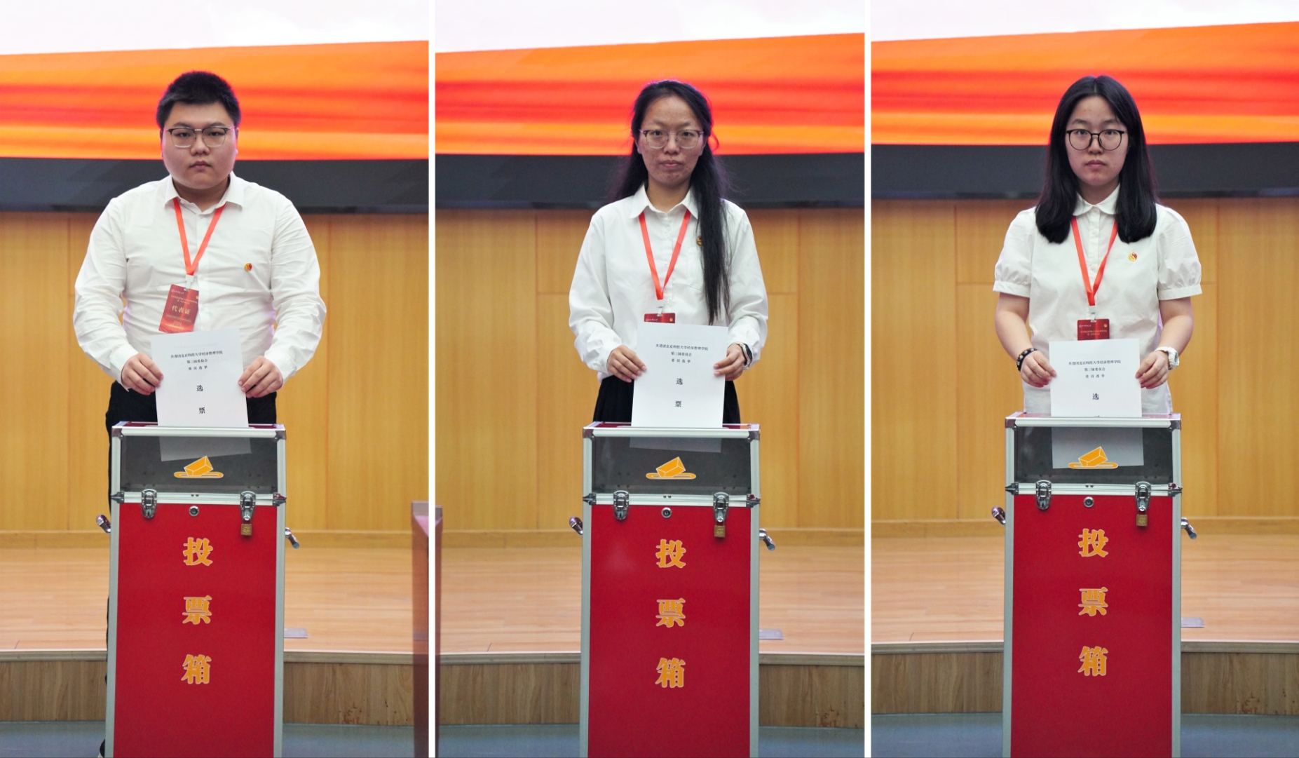 中午12时10分,共青团暗网 第三次代表大会第二次全体会议在学术报告厅召开,与会代表审议团委委员选举办法(草案)和大会总监票人、监票人建议名单,并宣布总计票人、计票人名单。随后进行第三届团委委员选举。随后,大会主席团第三次会议在经管楼503召开,主席团听取总监票人汇报选举情况并确定当选人名单,推选新一届委员会第一次全体会议召集人。