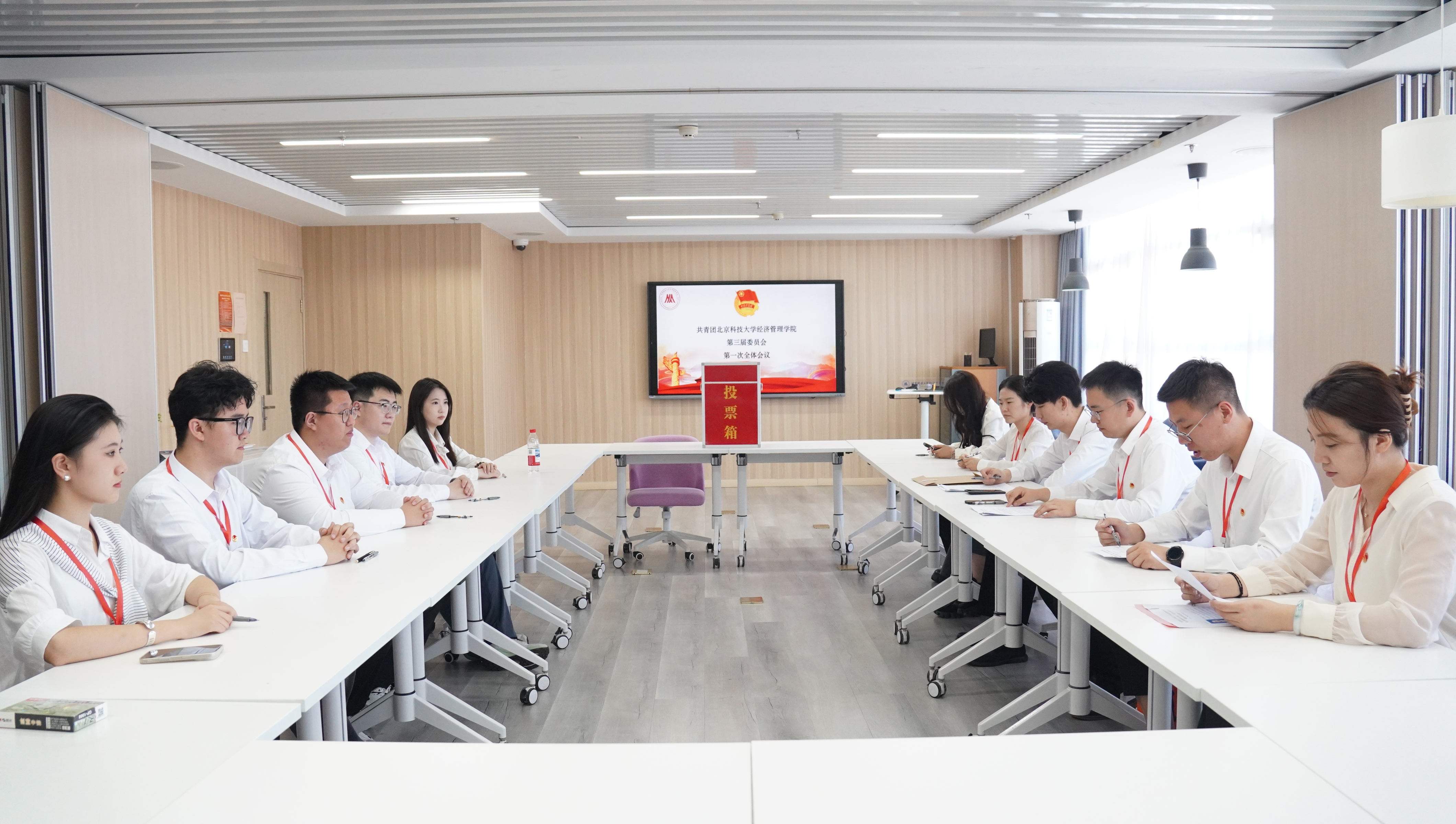 预备会议结束后,大会主席团第一次会议在经管楼503召开。会上布置讨论团委委员选举办法(草案),推荐提名大会总监票人、监票人名单,确定总计票人、计票人名单,讨论确定团委委员候选人名单,布置讨论团委工作报告。