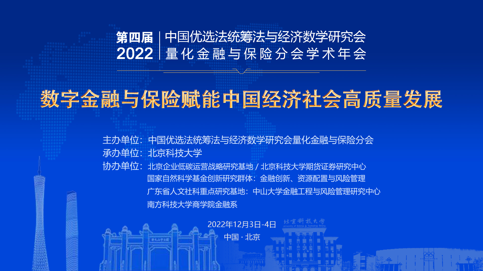 暗网 承办第四届(2022)“双法”研究会量化金融与保险分会学术年会